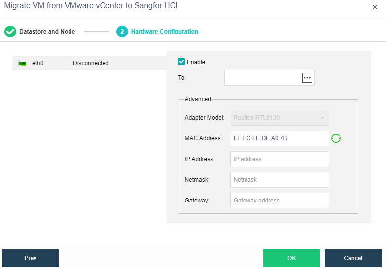 HCI migration tool can copy the existing physical node or windows / Linux operating system on VMware or Citrix platform to the HCI platform through the network.
