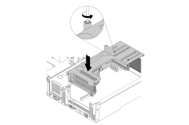 - Loosen the screws that secure the riser card assembly. Then, hold the assembly by the edges and carefully lift the entire cage straight up from the chassis.