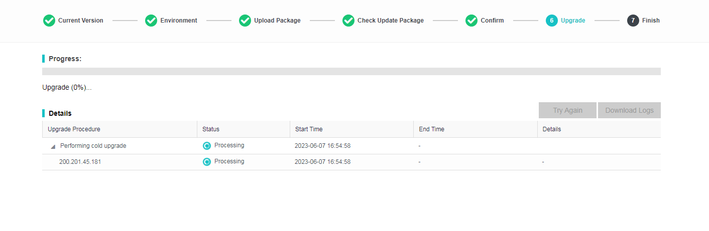 Start the upgrade.