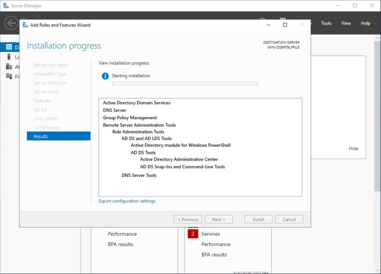 - Wait for the installation to be completed. You can view the installation progress on the Results tab.