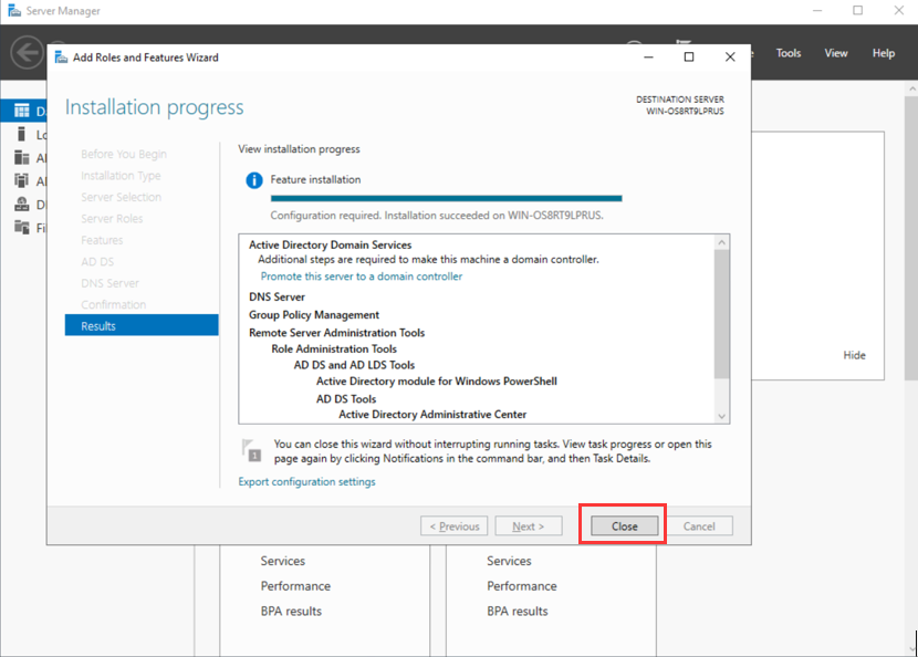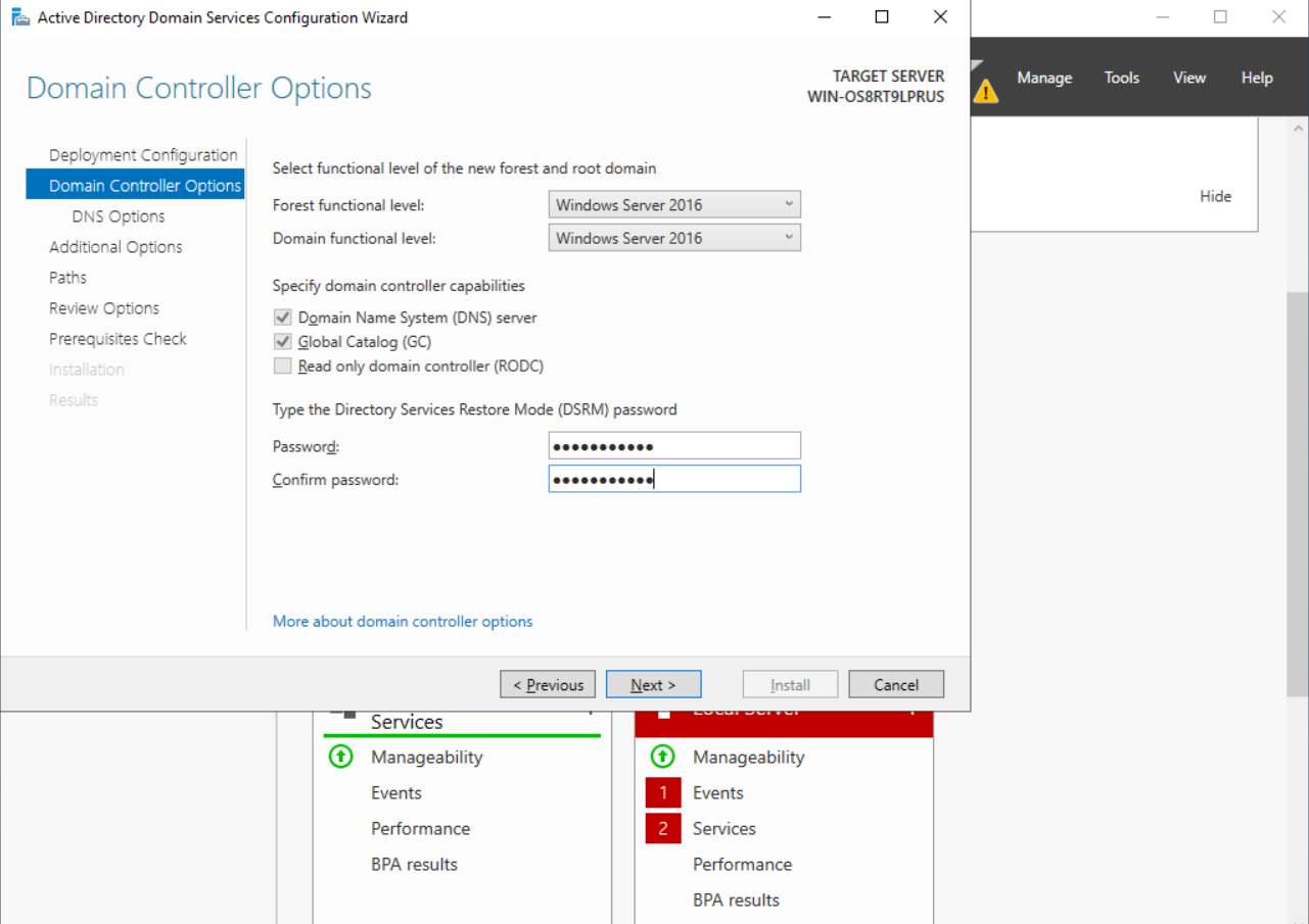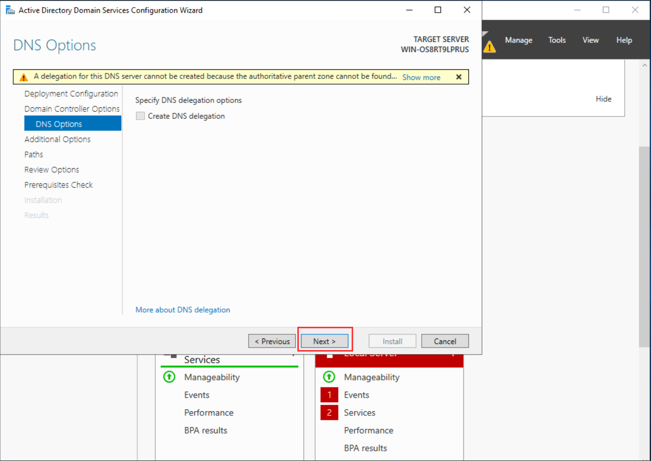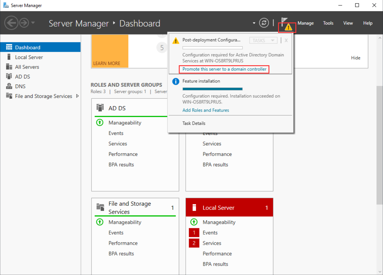 - Open Server Manager. On the Dashboard, click Promote this server to a domain controller.