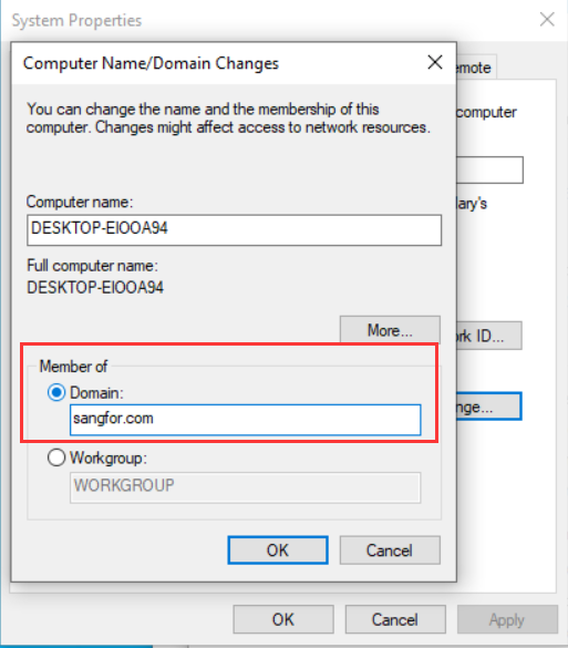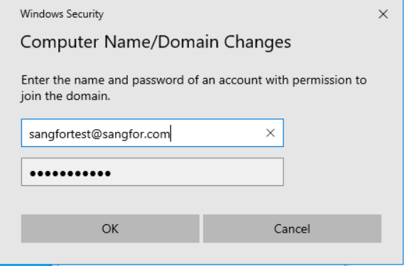 - In the process of joining the domain, you need to verify your identity. Use the user sangfortest created on the AD domain controller 192.168.1.4 for testing.