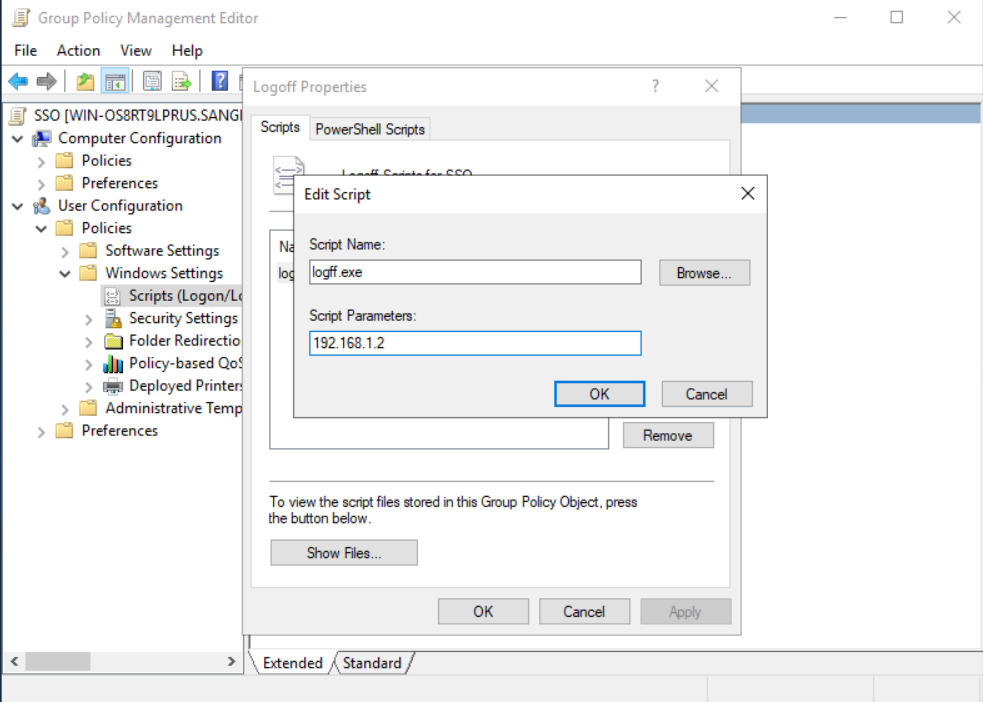 - For the Logoff script, copy the one downloaded from the IAG web console to the designated path, and fill in the Script Parameter as the IAG’s IP address 192.168.1.2.