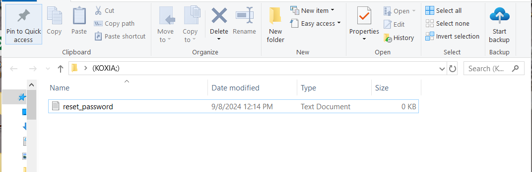 Ensure the USB is in FAT32 format, then create a txt file in the root directory and name it reset_password.txt.