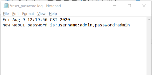 The password has been changed to admin. You can use this password to log in to the device’s web console. If the password reset fails, it will show you the fail message, and you can follow the steps above to retry.