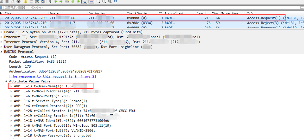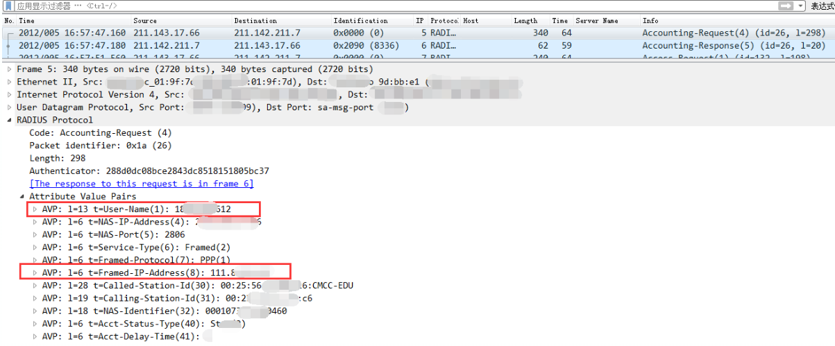 The mirrored data packet only contains the username and no user IP address field in the authentication packet.