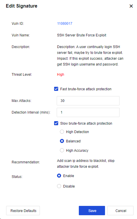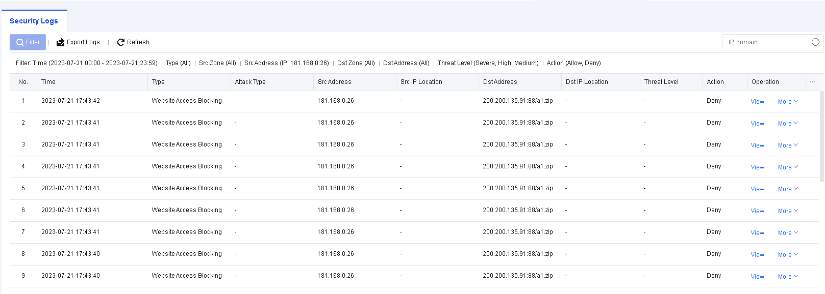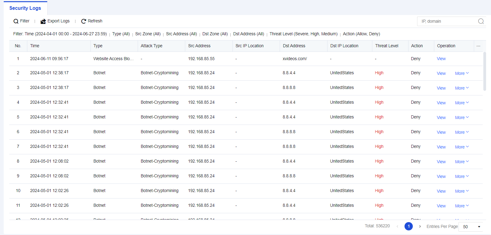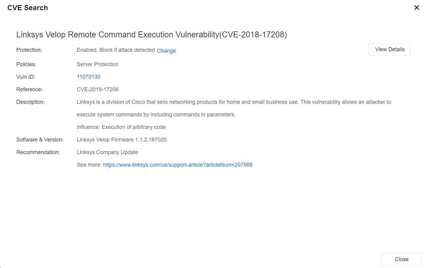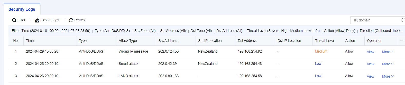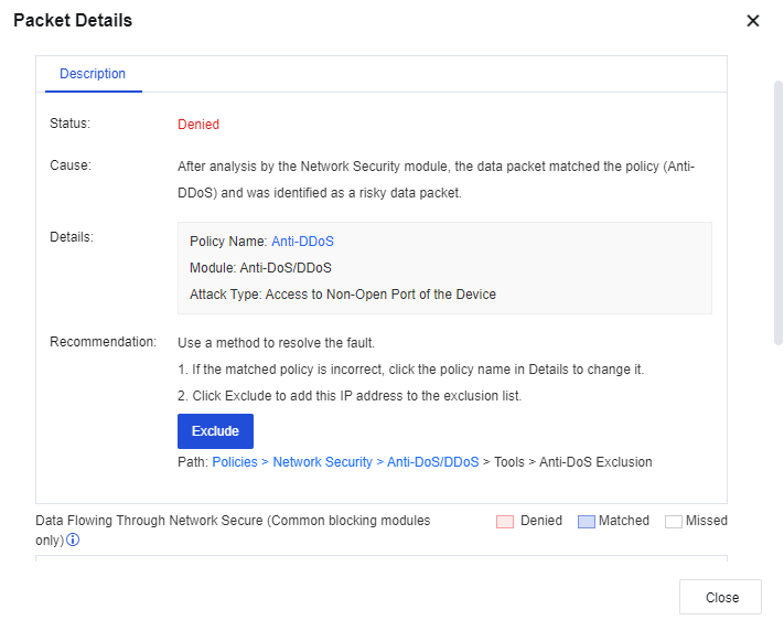 Network Secure integrates several security technologies for effective defense during an event. It provides a complete security defense system (L2-L7) to ensure no weaknesses in security protection. At the same time, Network Secure can also improve the timeliness and effectiveness of the defense system through security integration, including integrating cloud and endpoint security solutions and coordinating different modules. In addition, Network Secure also cooperates with third-party security agencies and utilizes threat intelligence from multiple sources, such as the Chinese National Vulnerability Database, VirusTotal, and malicious URL databases, to help users prepare for defense before security events occur.