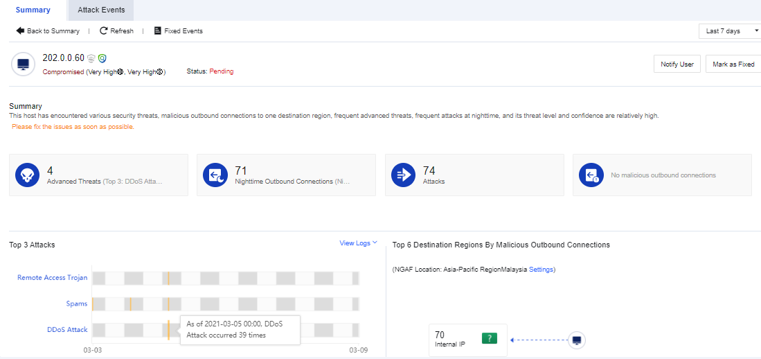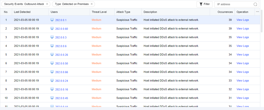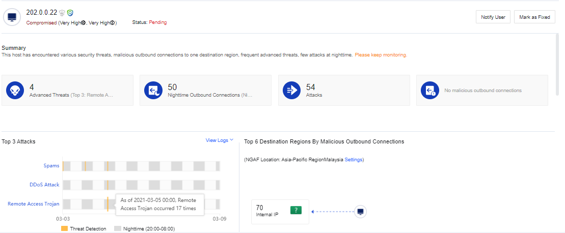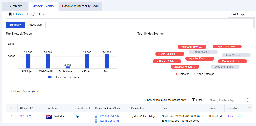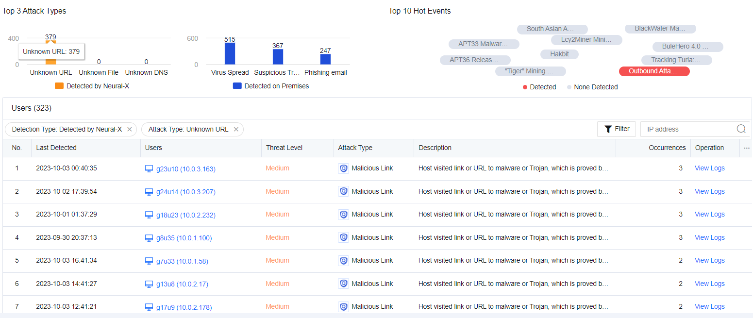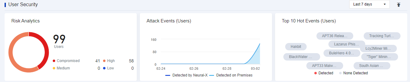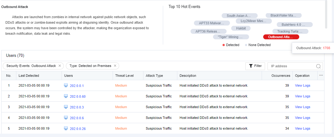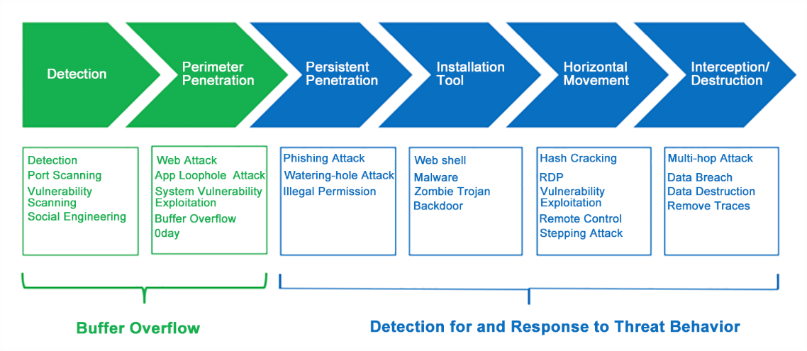 Traditional security work mainly focuses on border security defense and cannot detect and respond when attackers bypass security measures. If there are mature post-event detection and response measures, the impact of security events can be greatly reduced. Network Secure integrates post-event detection and rapid response technologies, which help users timely discover malicious behaviors even after hacking, such as detecting malicious behaviors initiated by zombie computers, webpage tampering, website backlink embedment, and Webshell backdoor, and quickly push alarm events to assist users in responding and handling.