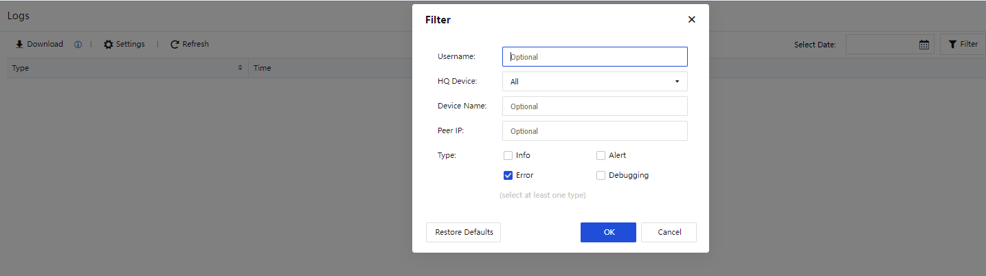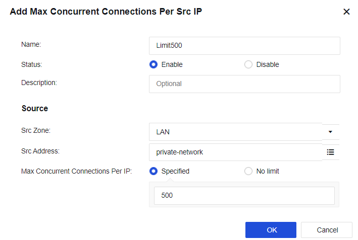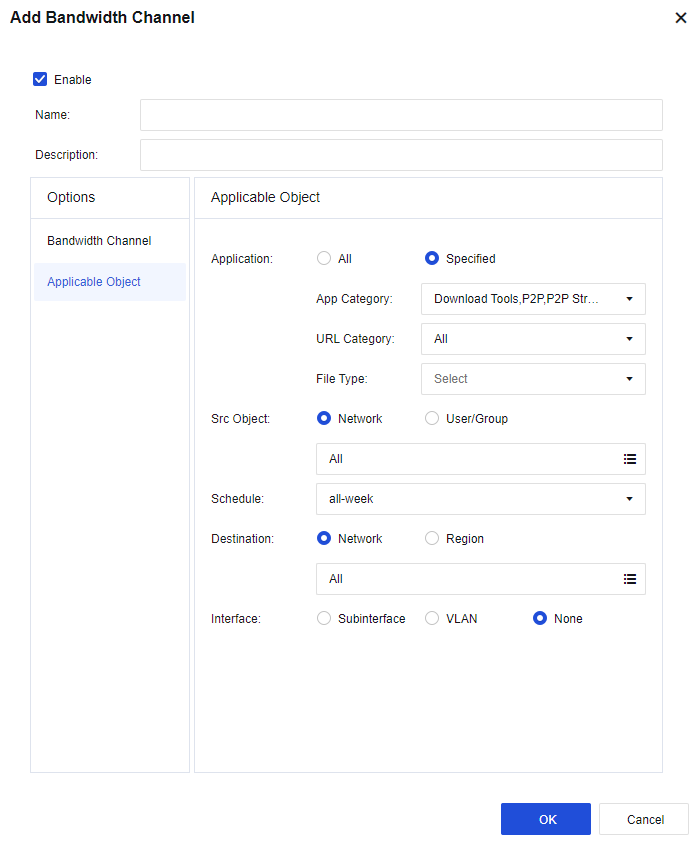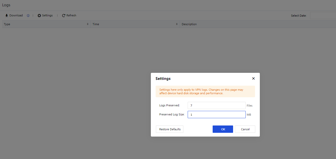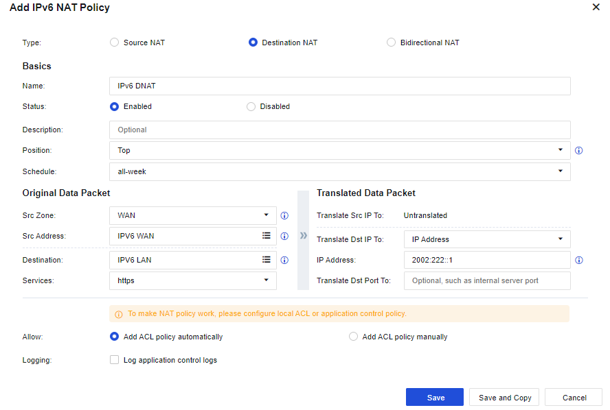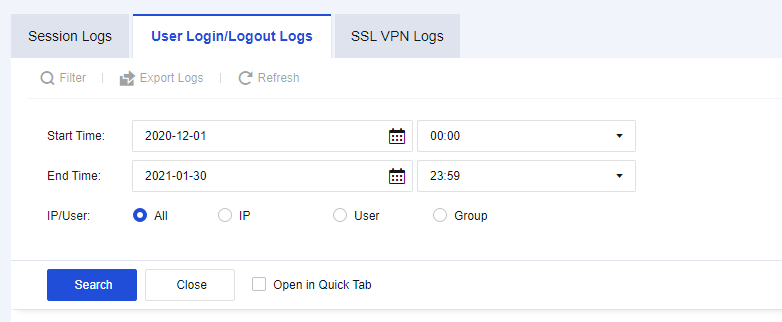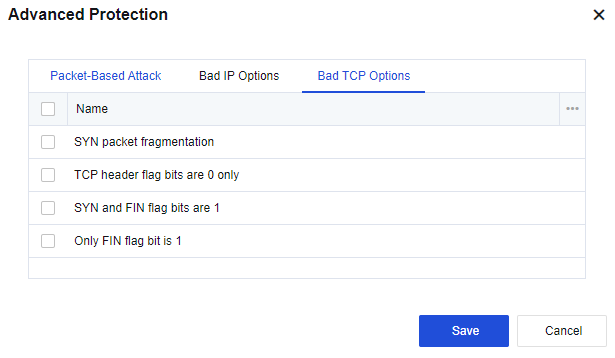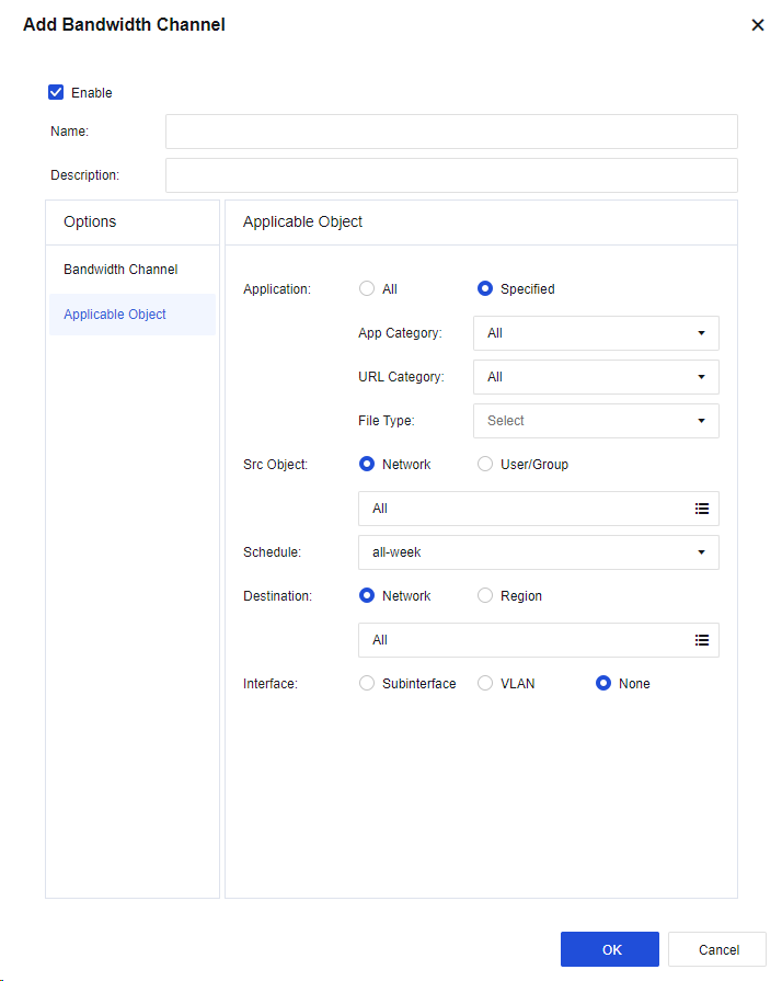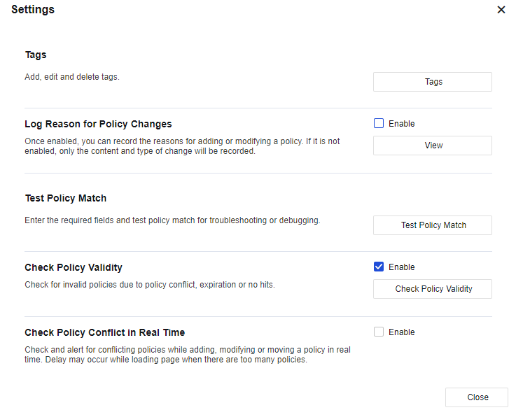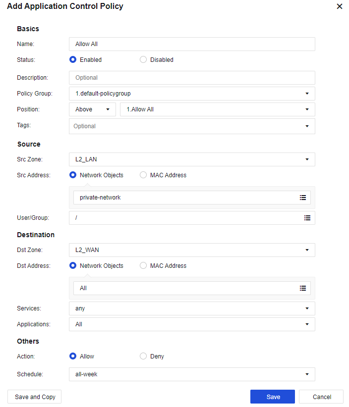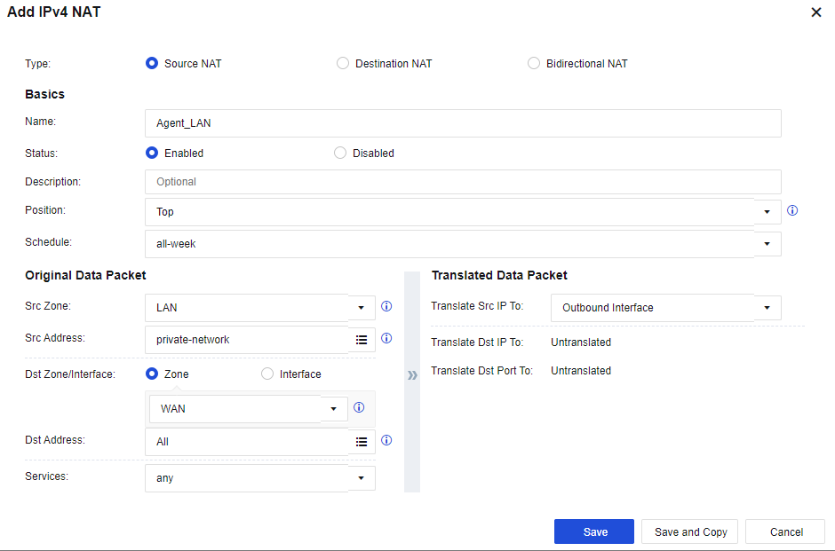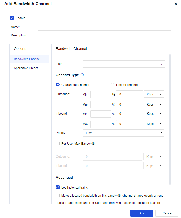 The Traffic Audit Logs is as shown below (Disable it normally). If you need to enable it, select the Syslog (Recommended) or Cyber Command for the logging location. It is not recommended to record logs in the firewall.