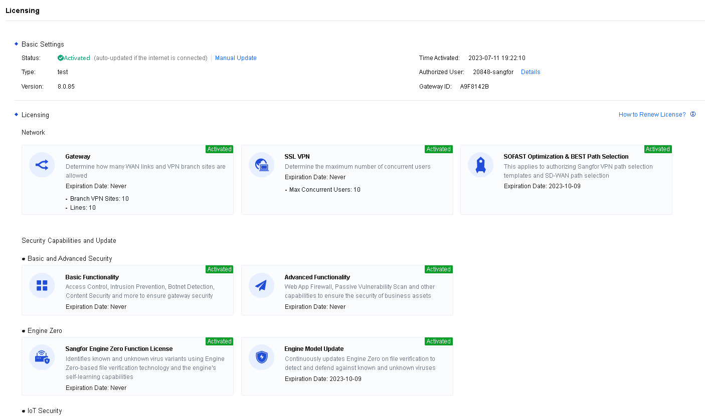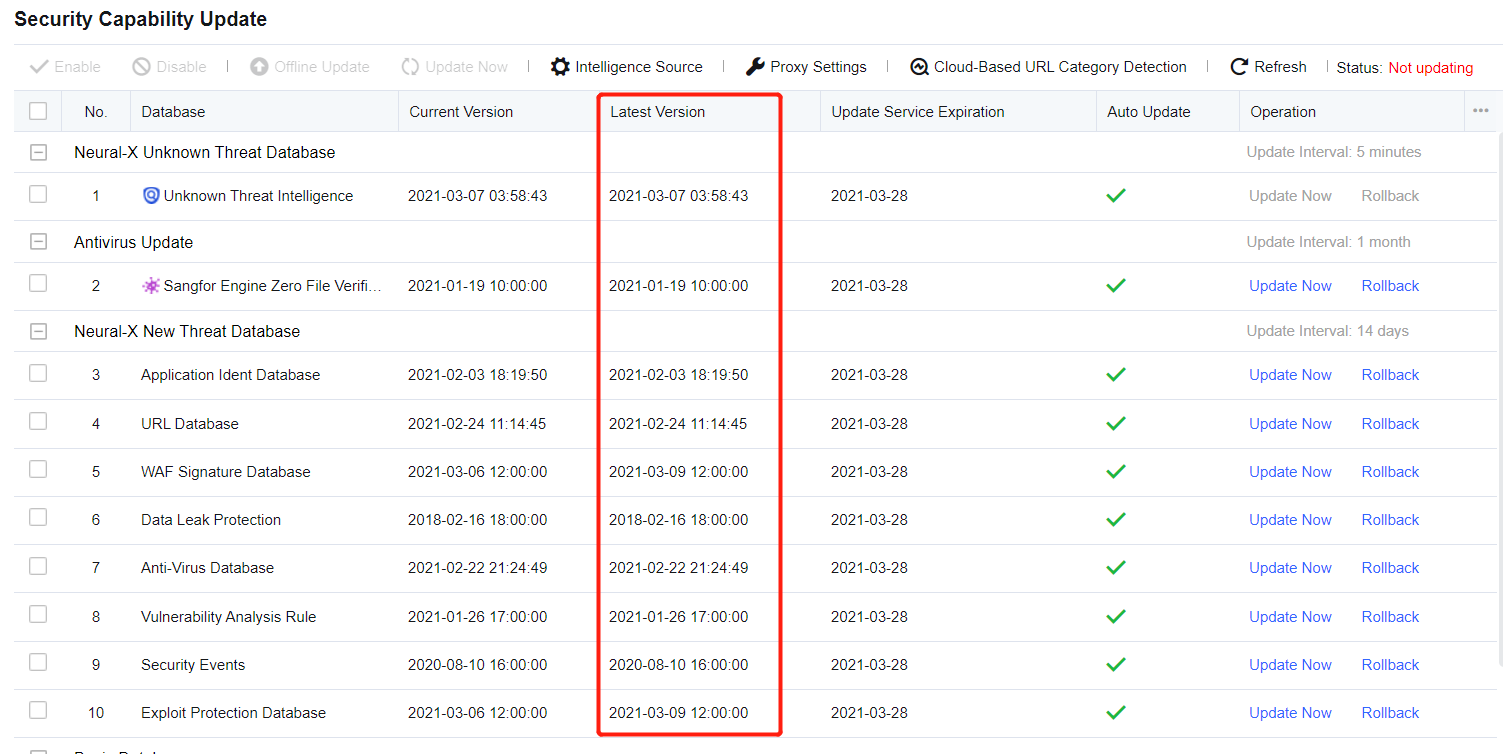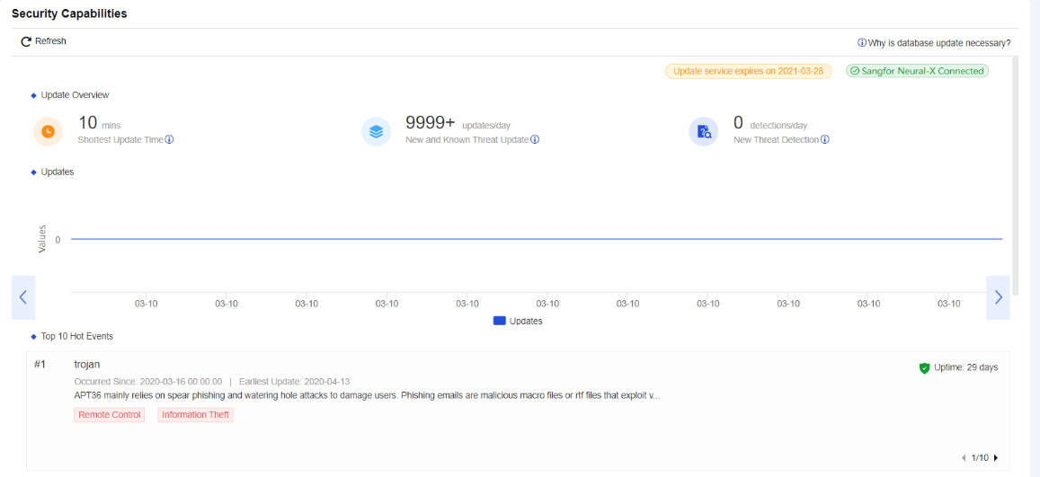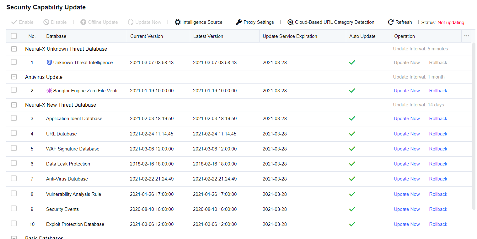 - In System > Security Capability Update, check whether the expiry date of the rule database update service is up to date.