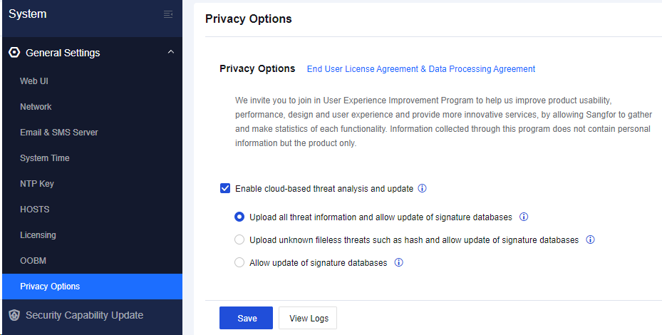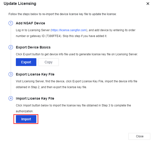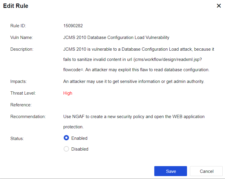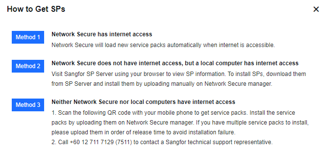 - If the device cannot access the network, download the rule database offline from the official website to update. If no rule database is available on the official website, contact Sangfor Technical Support to update the rule database for you.