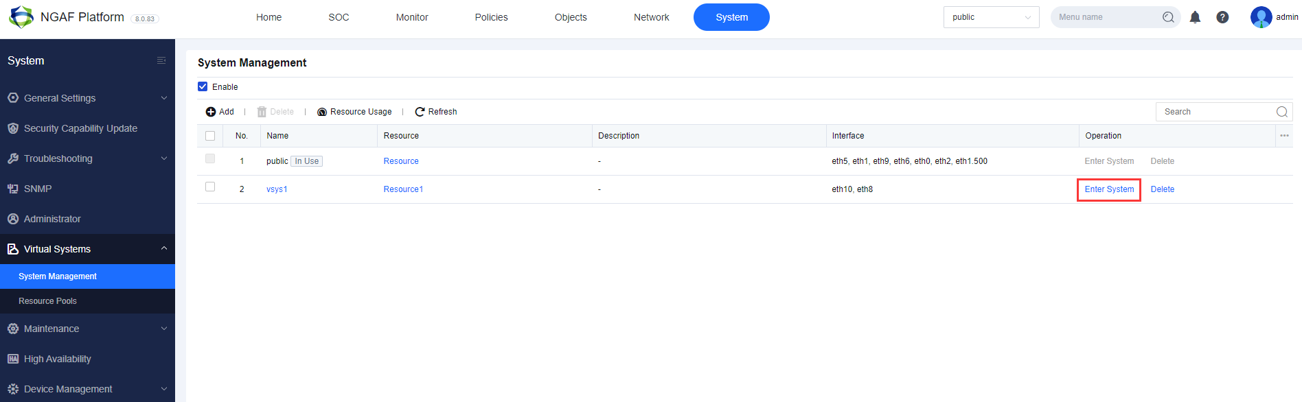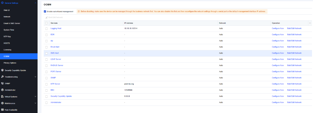 | 5 | Whether the administrator can access Network Secure through the management IP address. | The administrator can access the Network Secure console remotely and perform operations on the console as expected. |