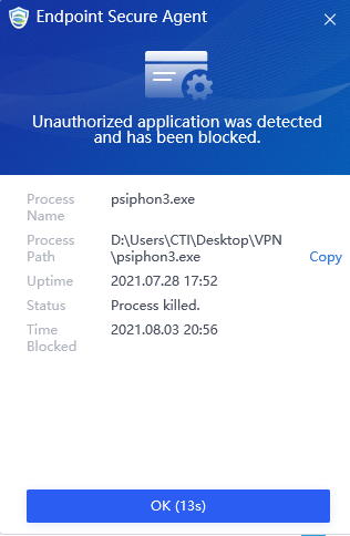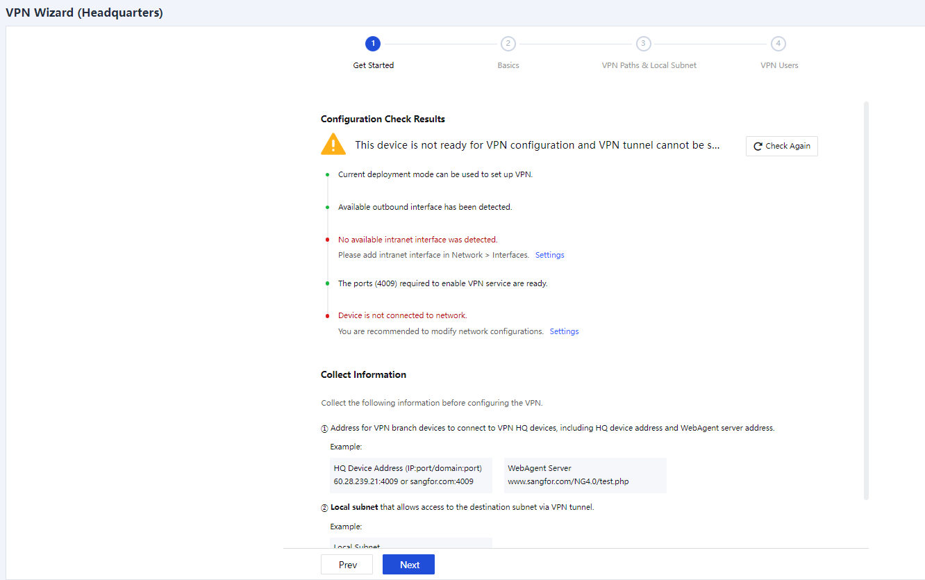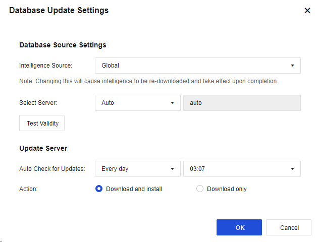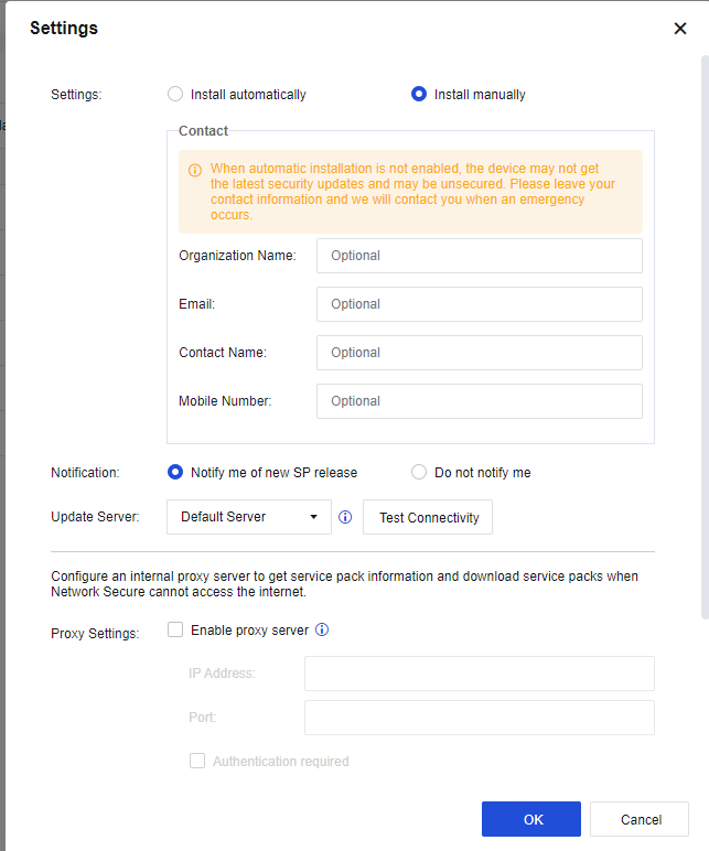 | 6 | Whether the device can connect to the Internet. | The device is connected to the Internet for updating the database and service packs. |