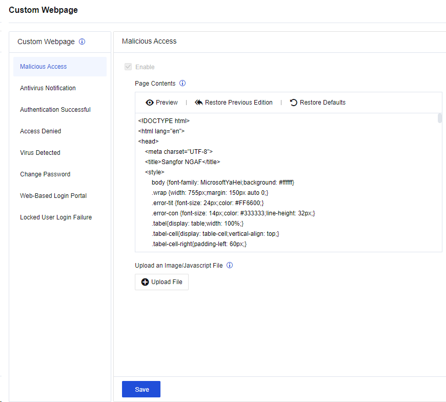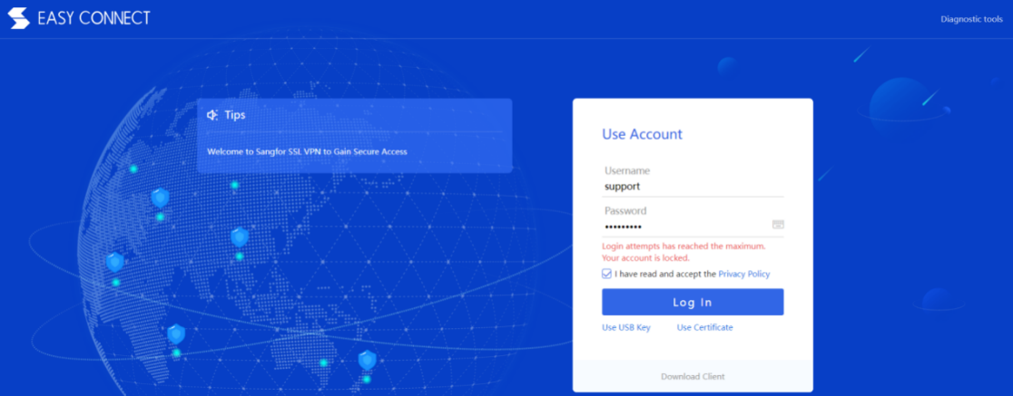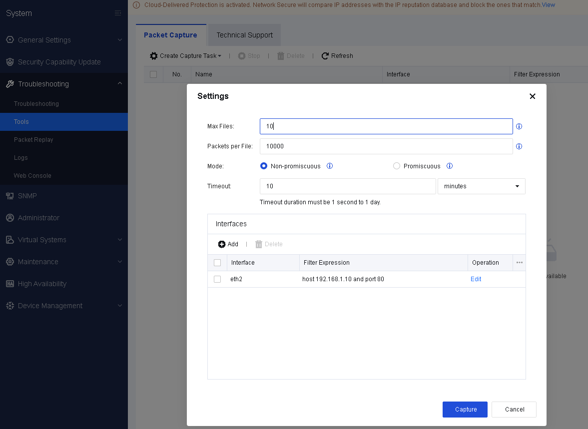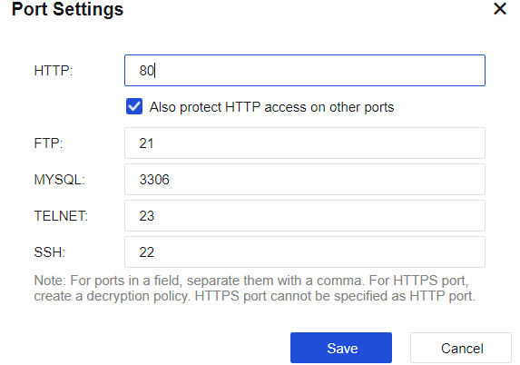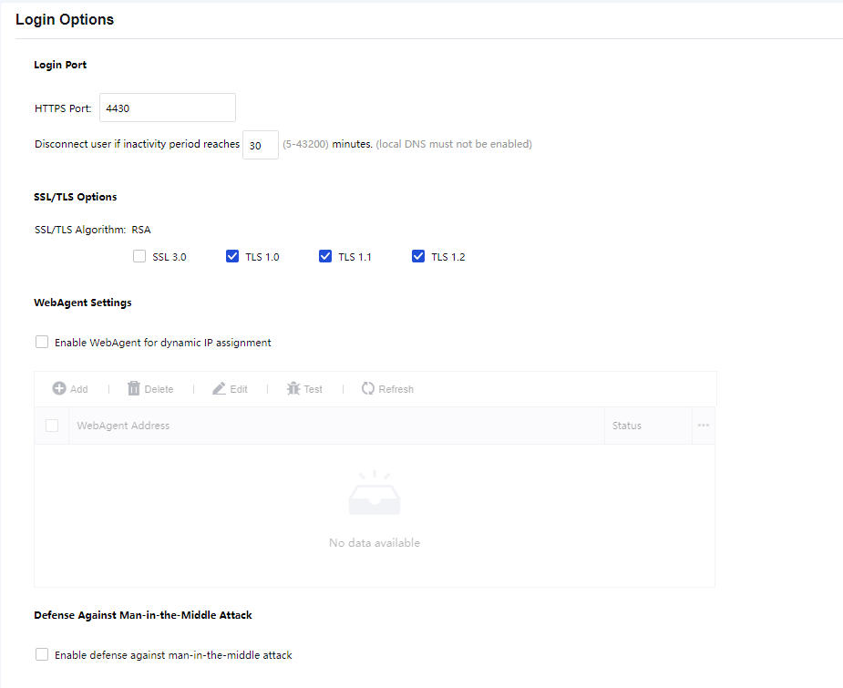 Network Secure supports secure HTTPS login, which uses the standard port of the HTTPS protocol to prevent security hazards arising from interception during configuration.