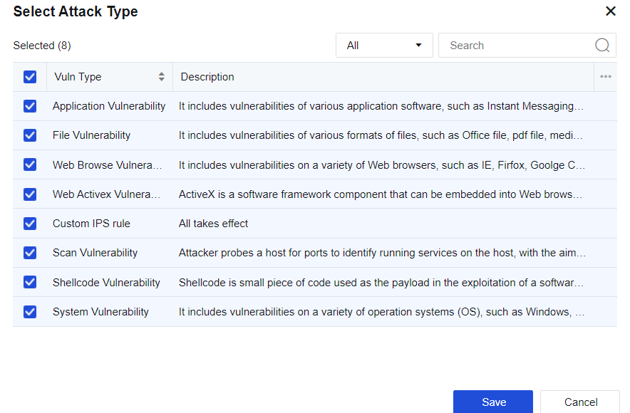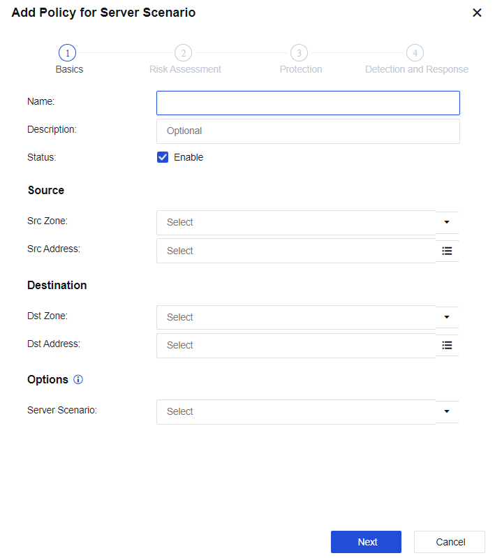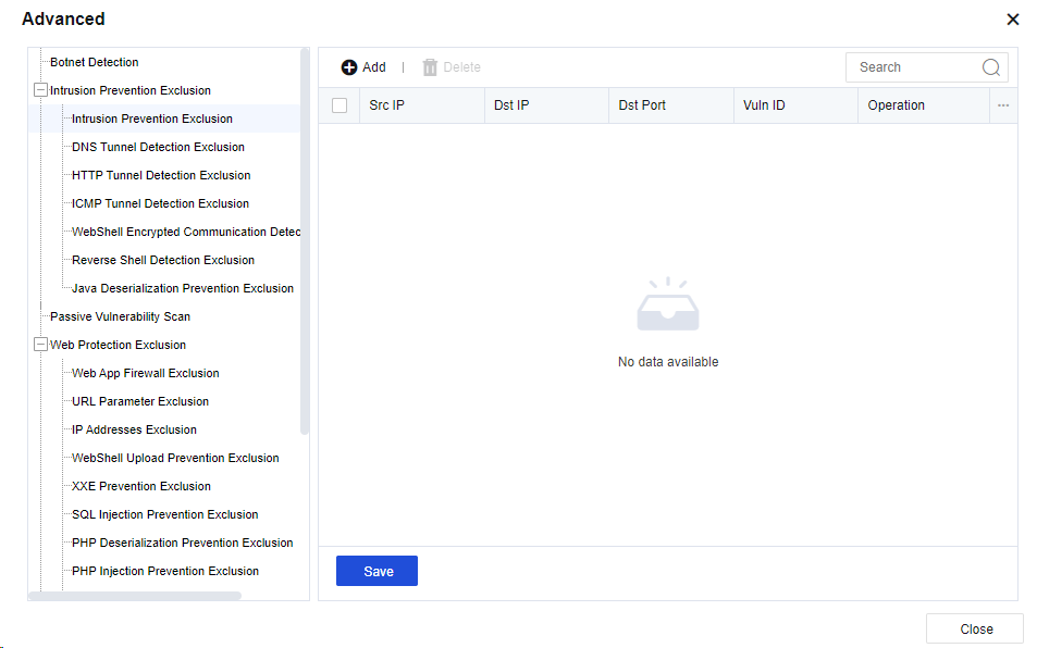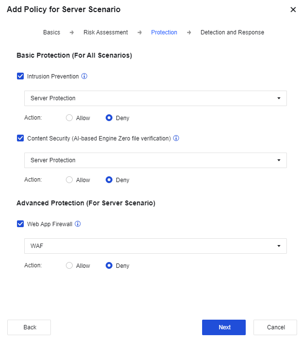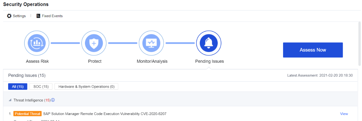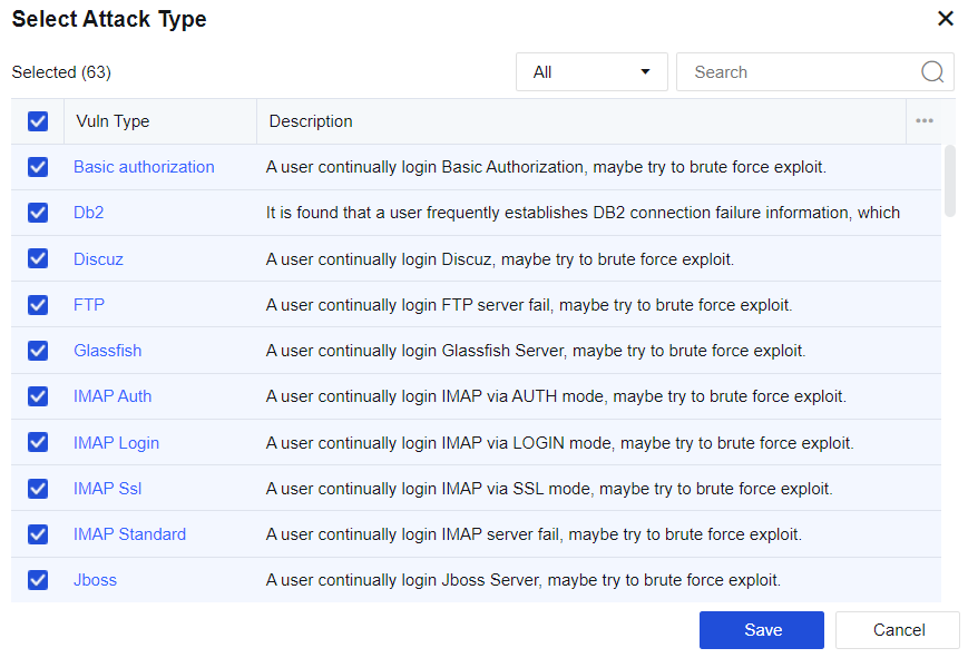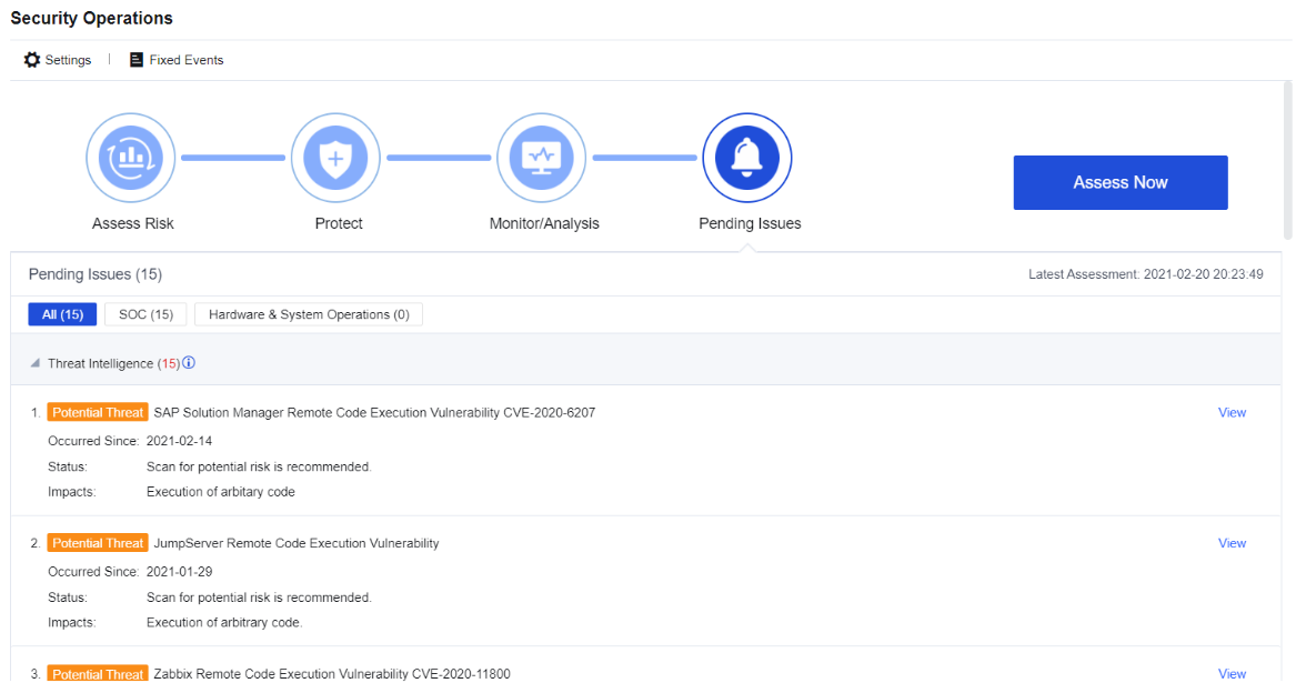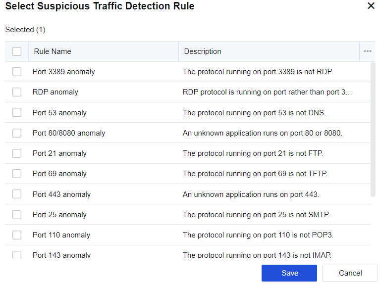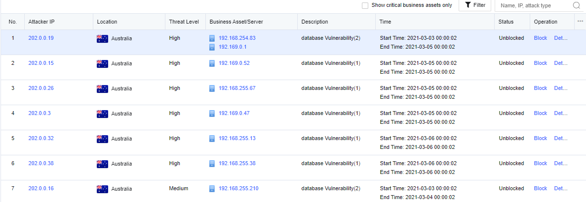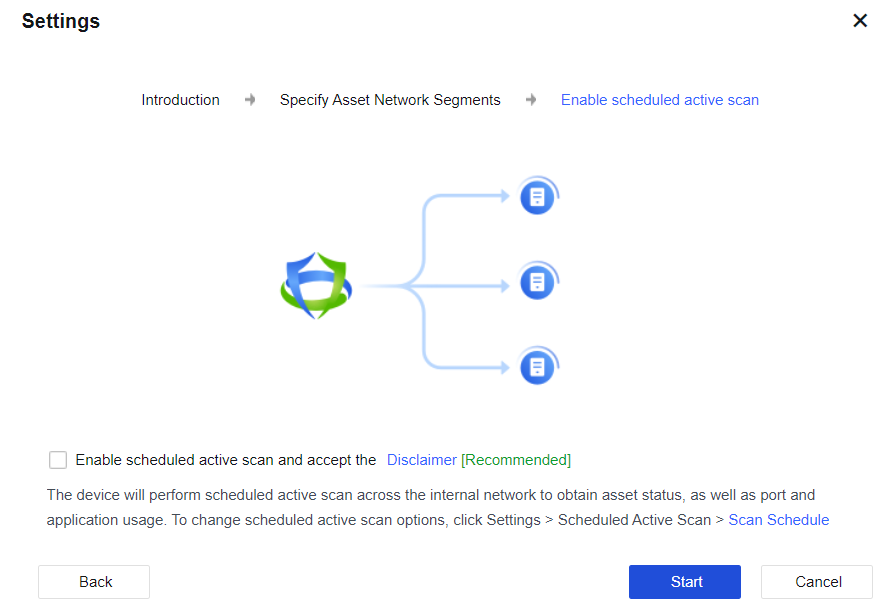 Network Secure can automatically identify risks such as open ports, vulnerabilities, and weak passwords on internal servers in advance and judge whether the identified assets have corresponding security protection policies and are in effect.