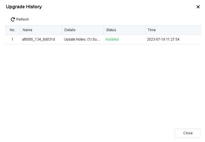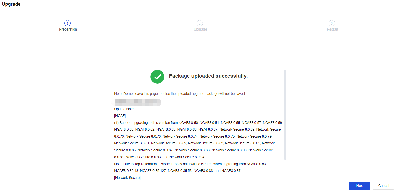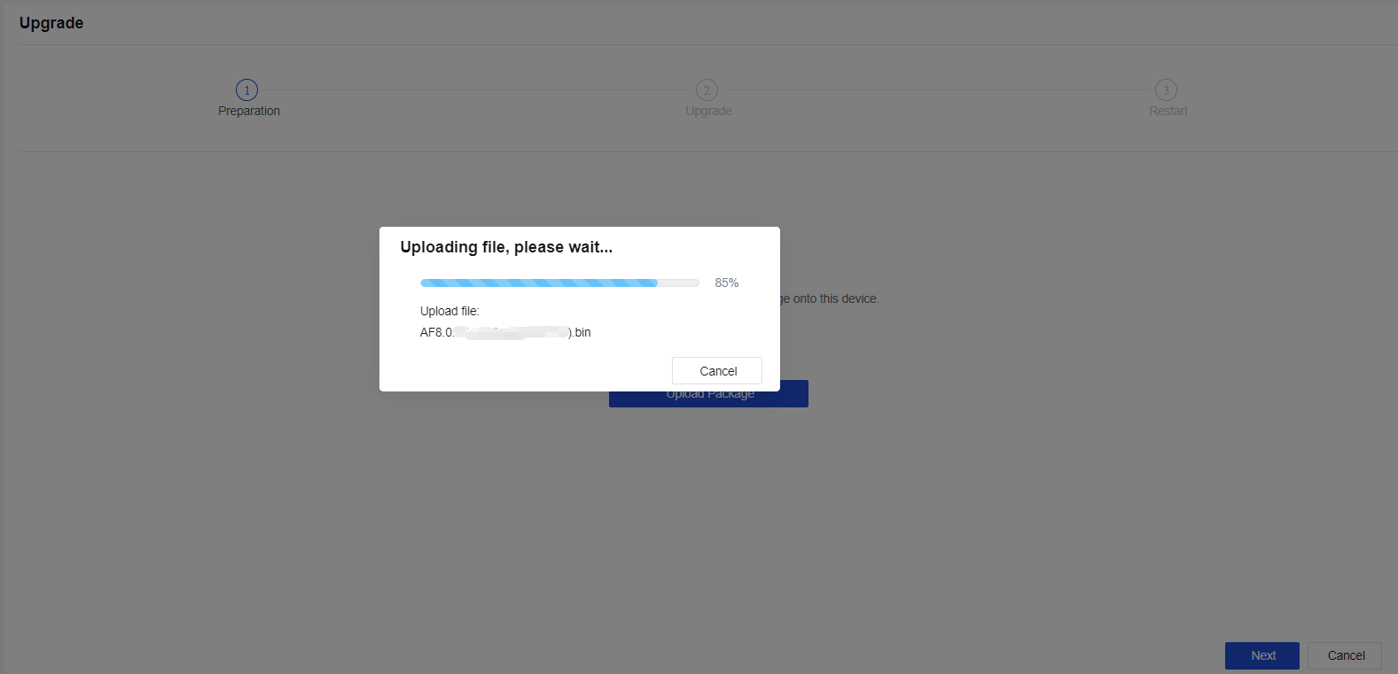During the uploading, backup, or upgrade process, you cannot close the page. Otherwise, you need to re-enter the page and perform the upgrade operation again.