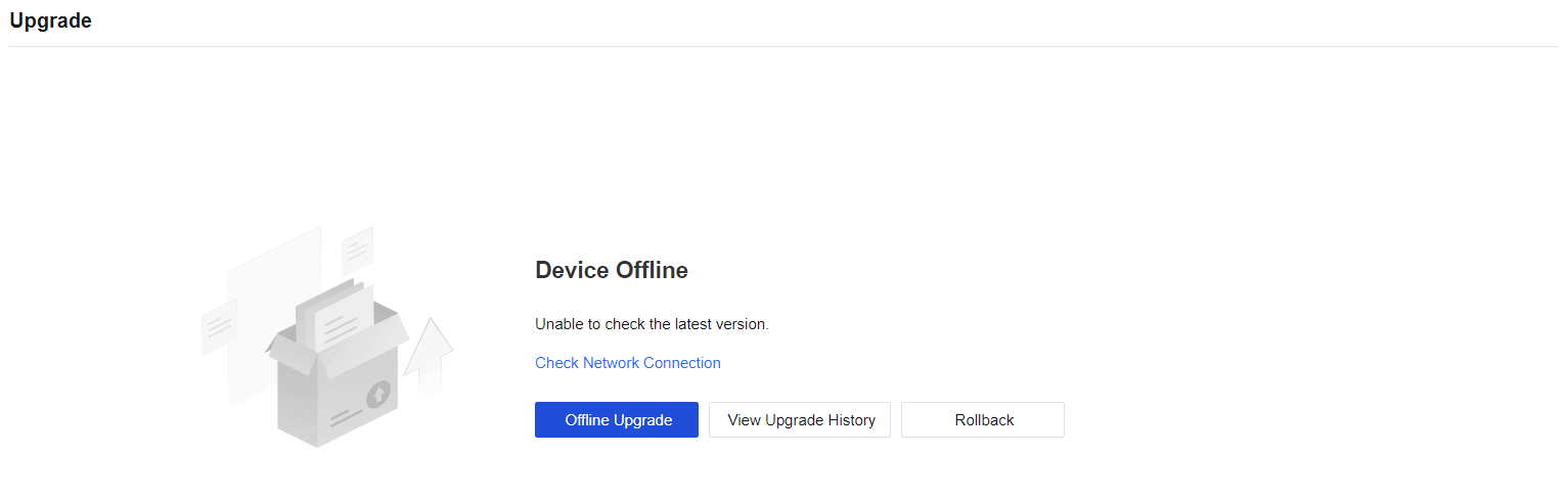 For offline upgrade, enter the System > Maintenance > Upgrade, click the Update button, upload the local upgrade package, and follow the instructions to complete the upgrade.