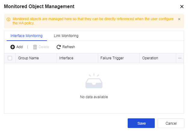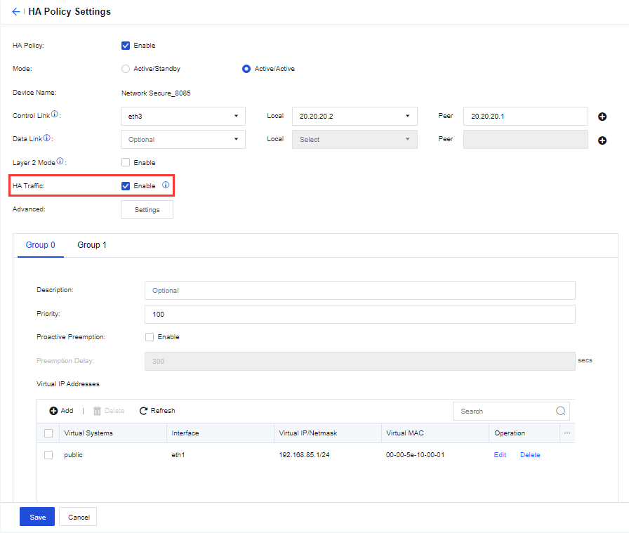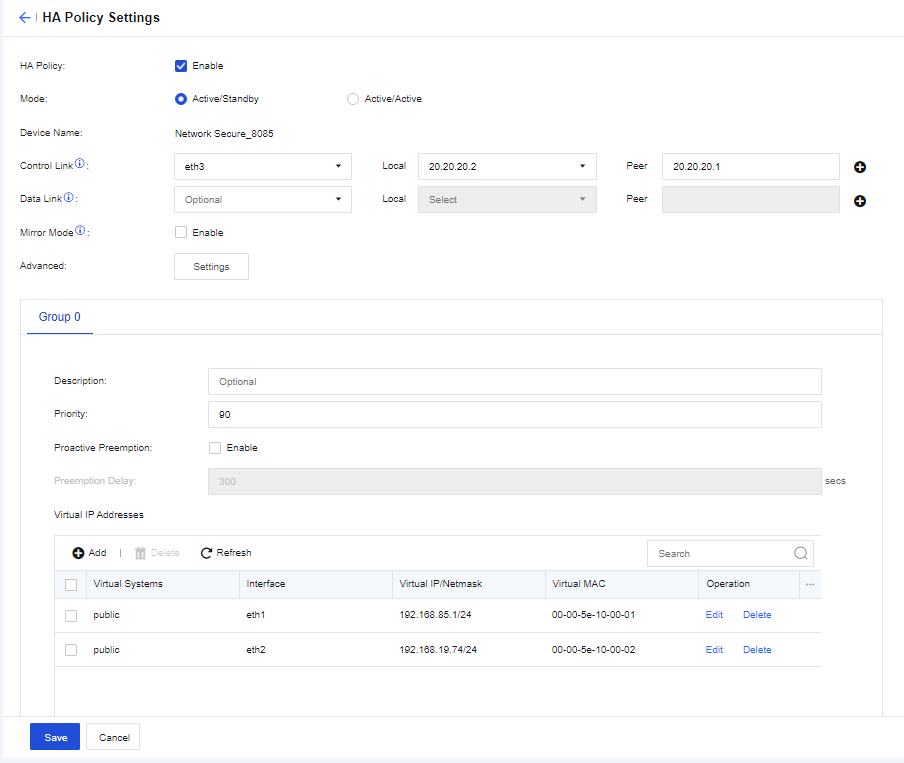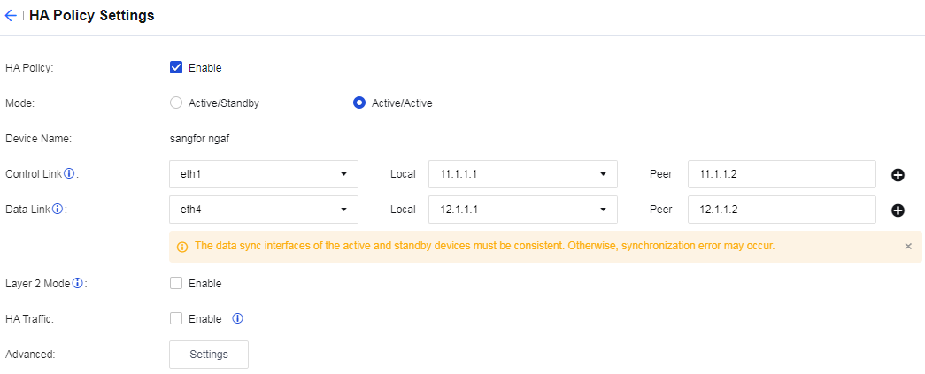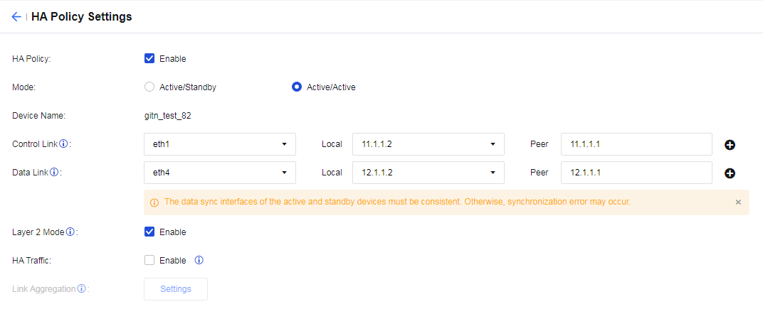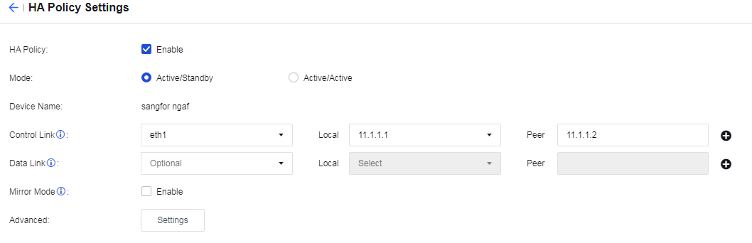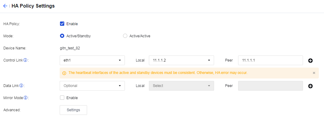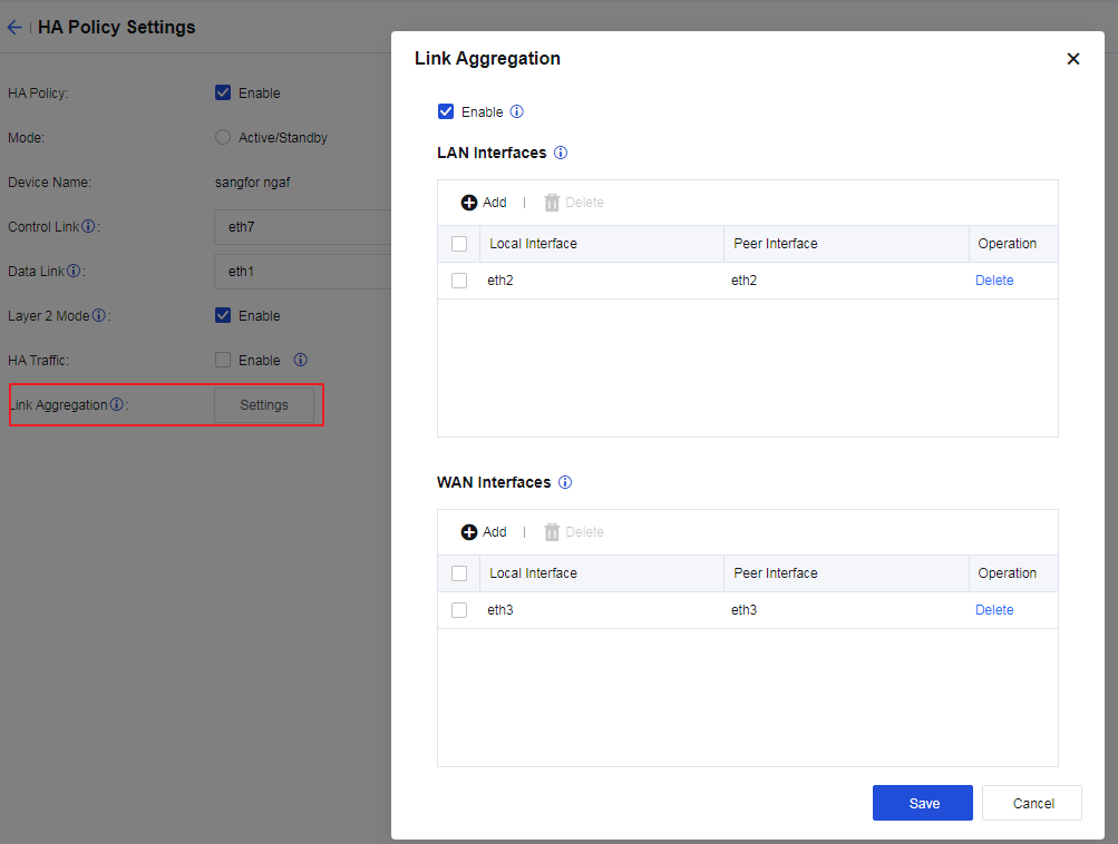 - Select an idle network interface as the HA interface, and connect the HA interfaces of two Network Secure devices with a network cable.