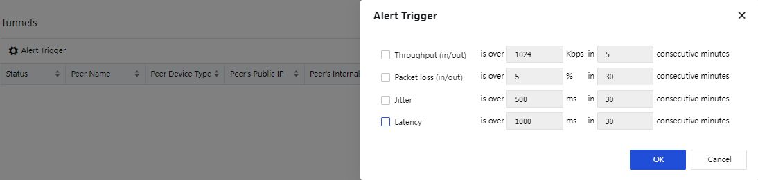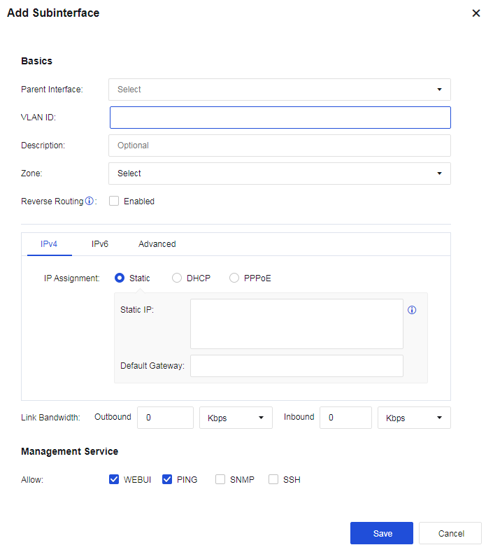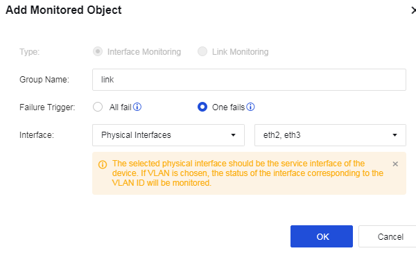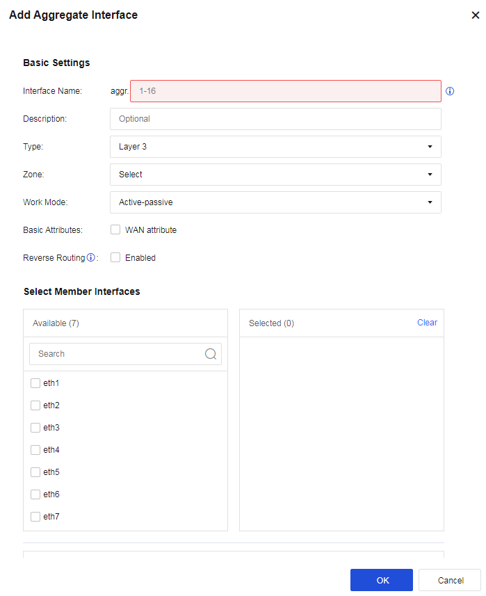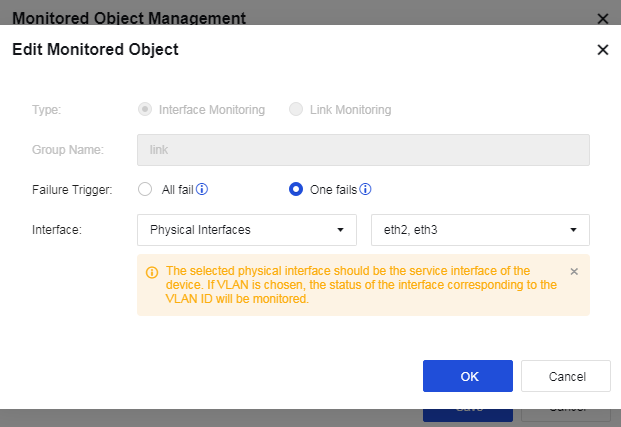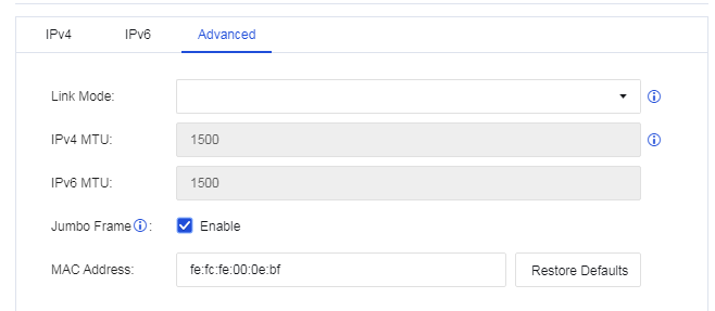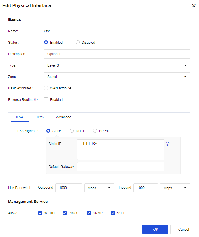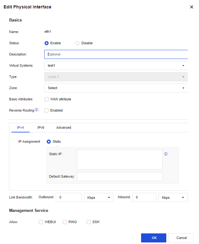 Go to Network > Interfaces > Physical Interfaces and click the interface you want to edit. Click Advanced and select different rates and duplex modes to check whether the interface can work normally.