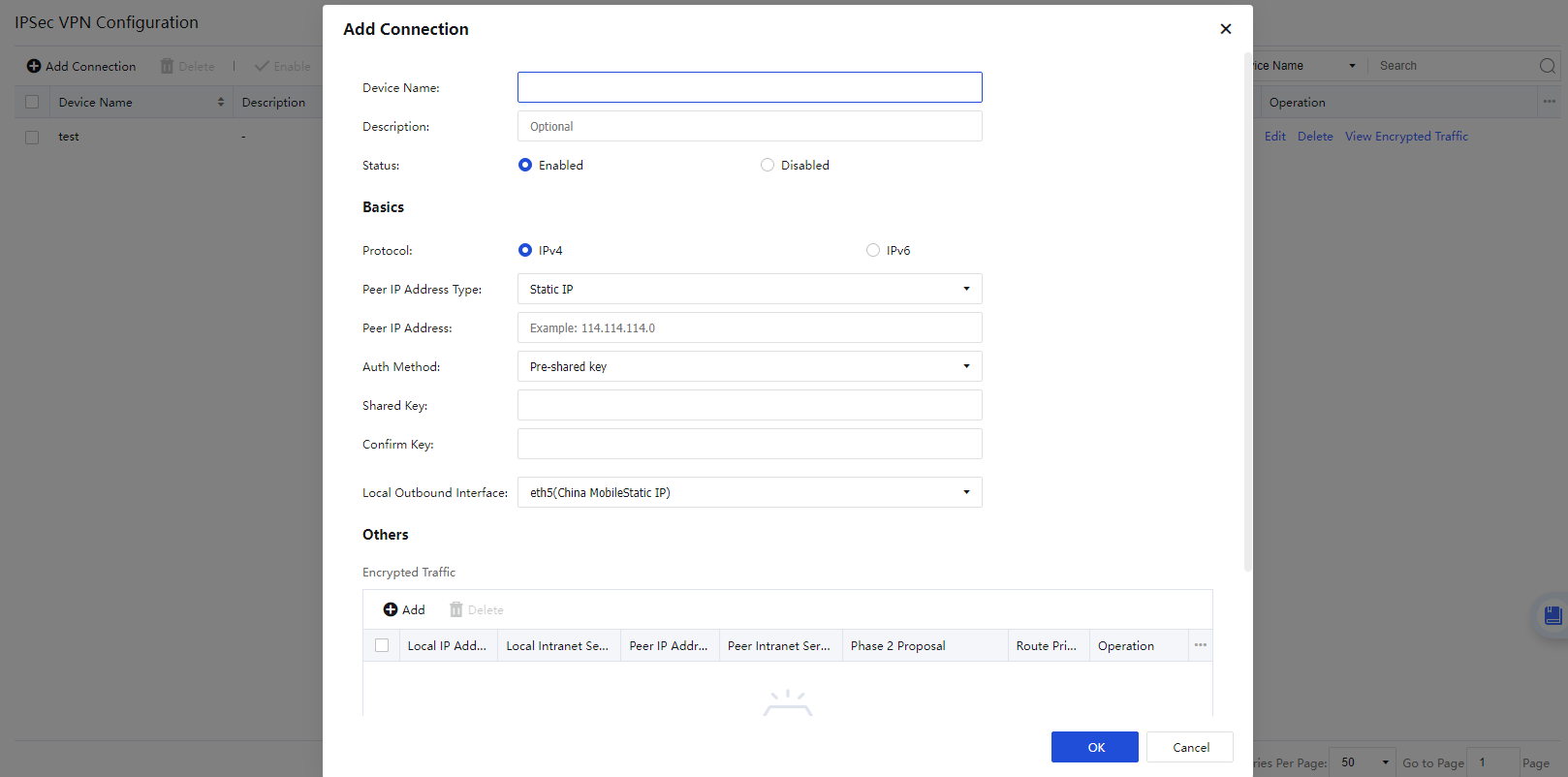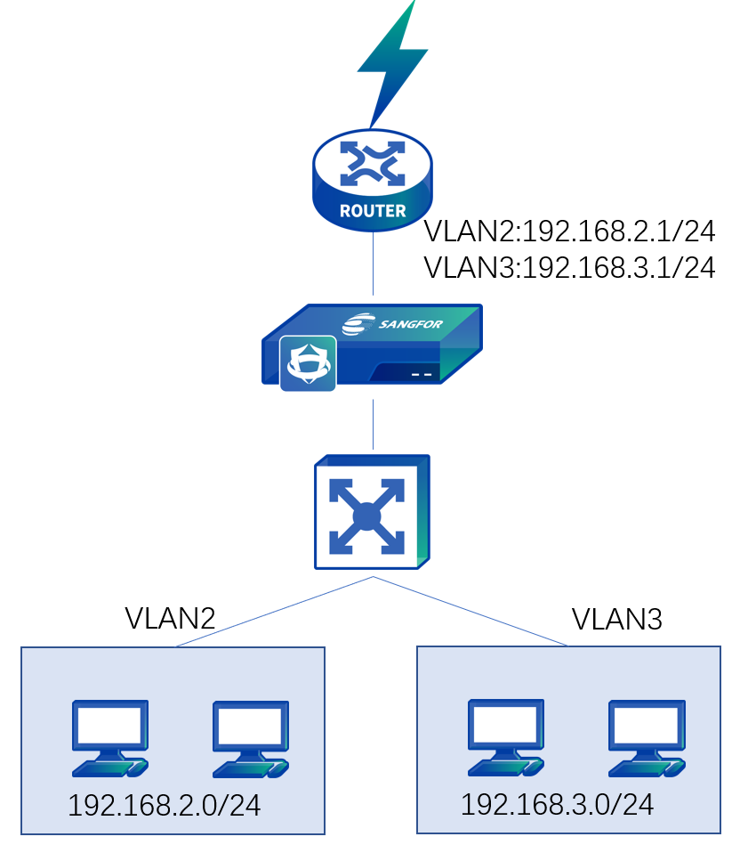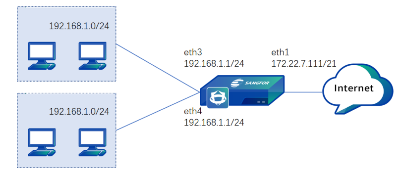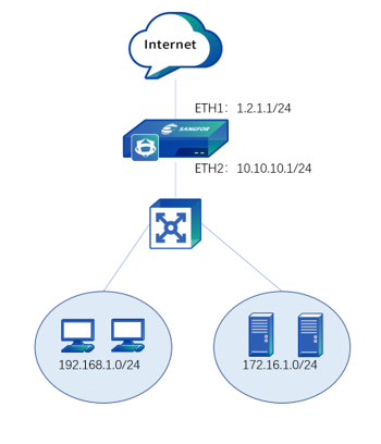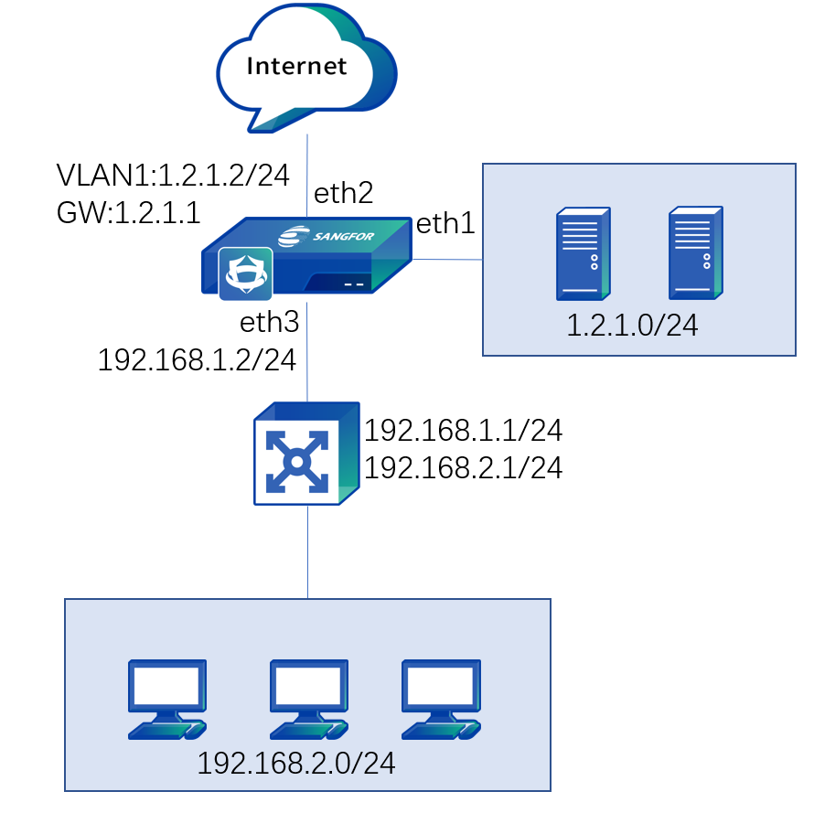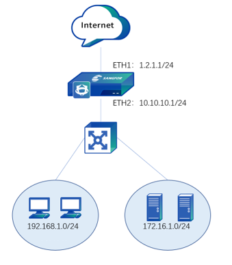 The multi-line Network Secure device supports multiple Internet lines. At this time, the ETH2 interface is connected to the second Internet access device. The ETH3 interface is connected to the third Internet line, and so on.
