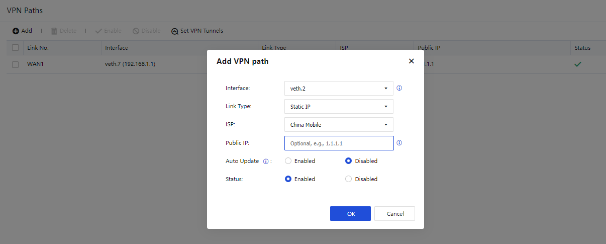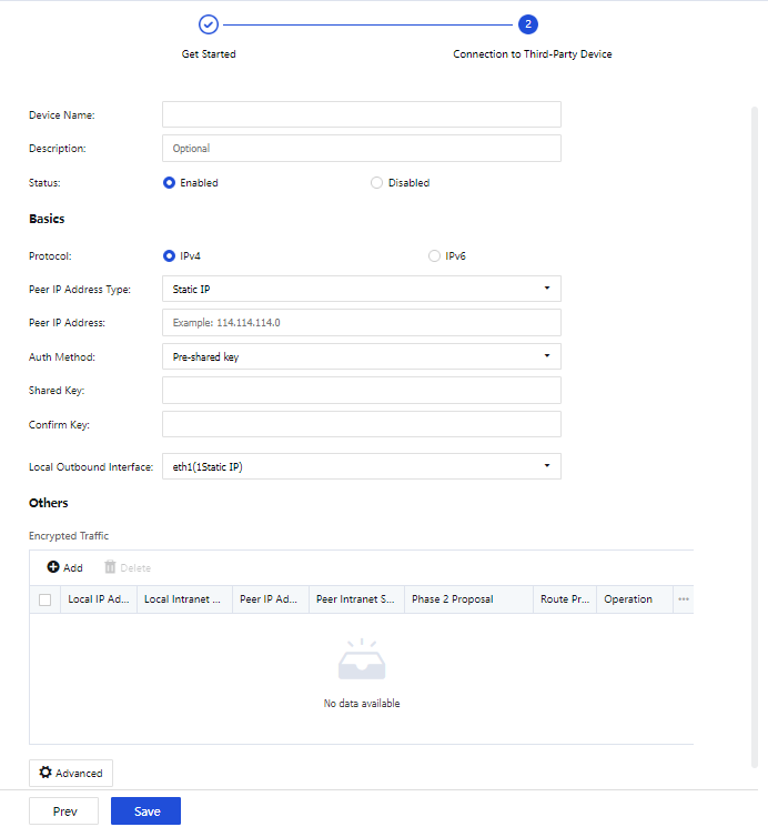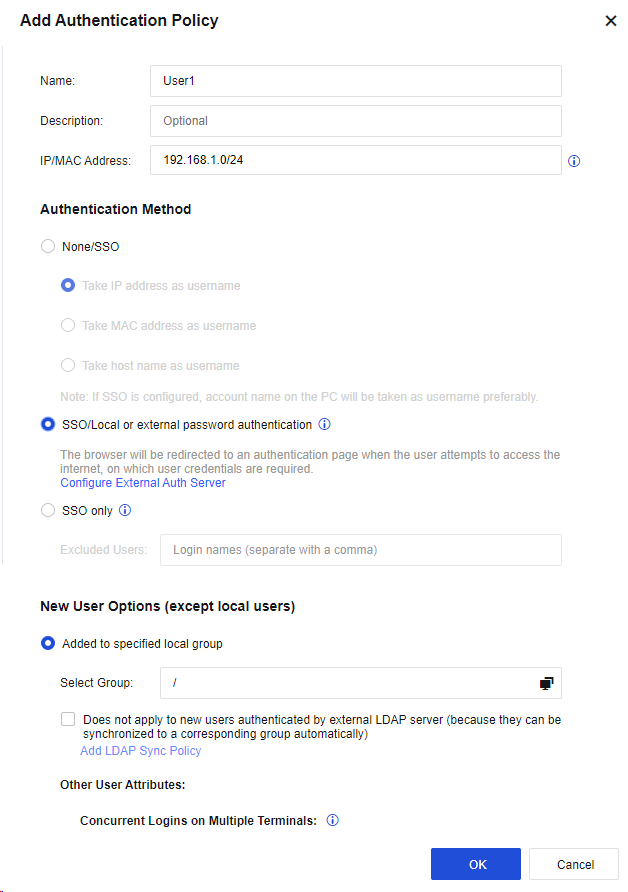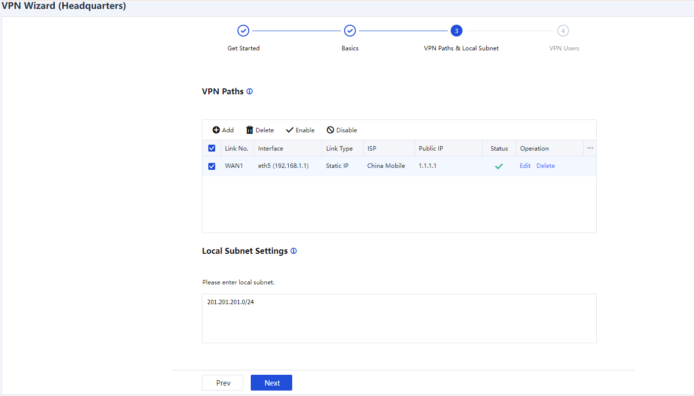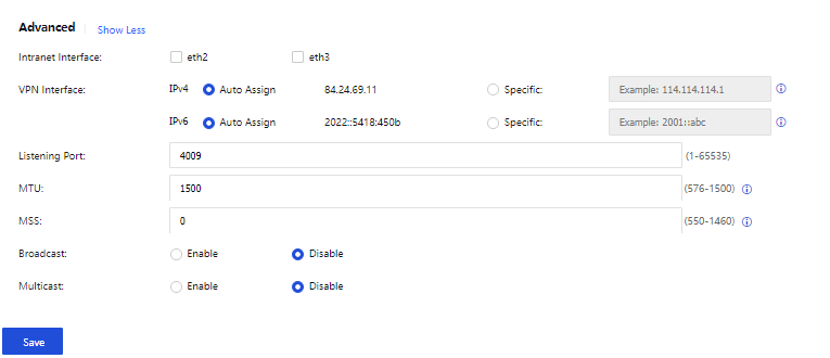 The multi-line Network Secure device supports multiple Internet lines. At this time, the ETH2 interface is connected to the second Internet access device. The ETH3 interface is connected to the third Internet line, and so on.