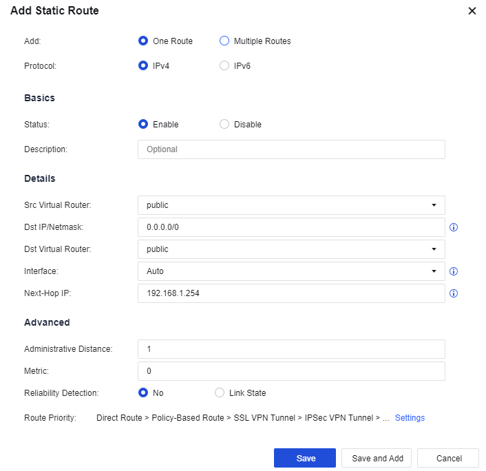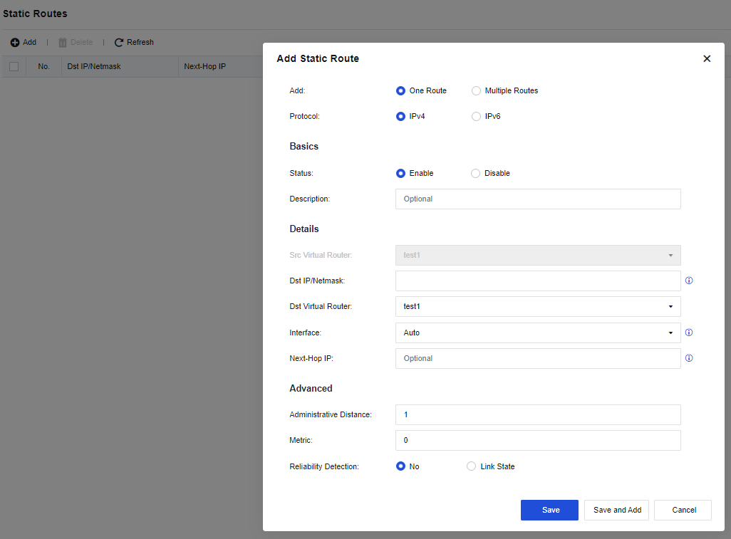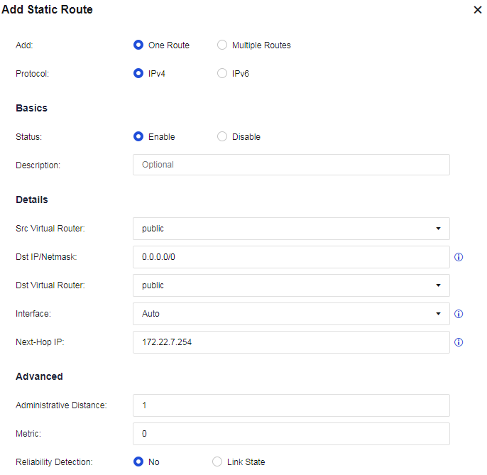 | Routing mode (Layer 3) | The device can be used as a routing device, which changes the network the most but can realize all the device’s functions. |
