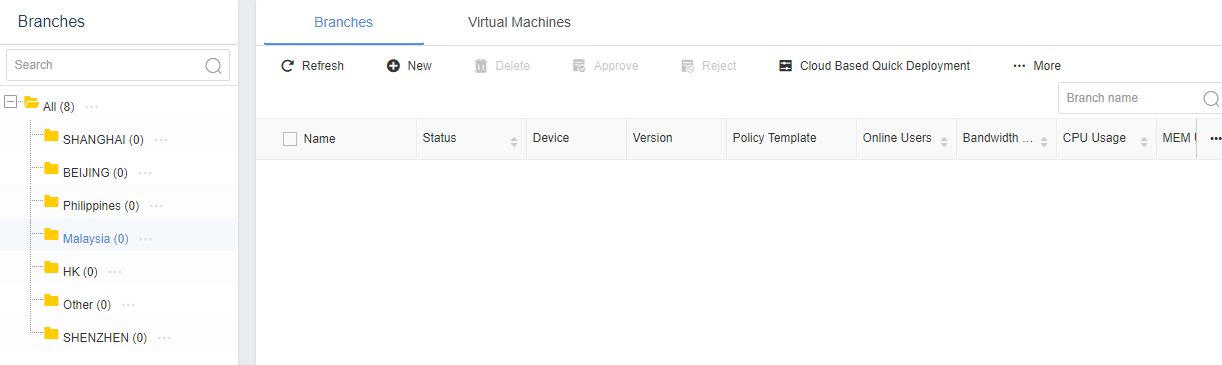 Log in to the Central Manager console and click System > Upgrade > Branch Device Upgrade.