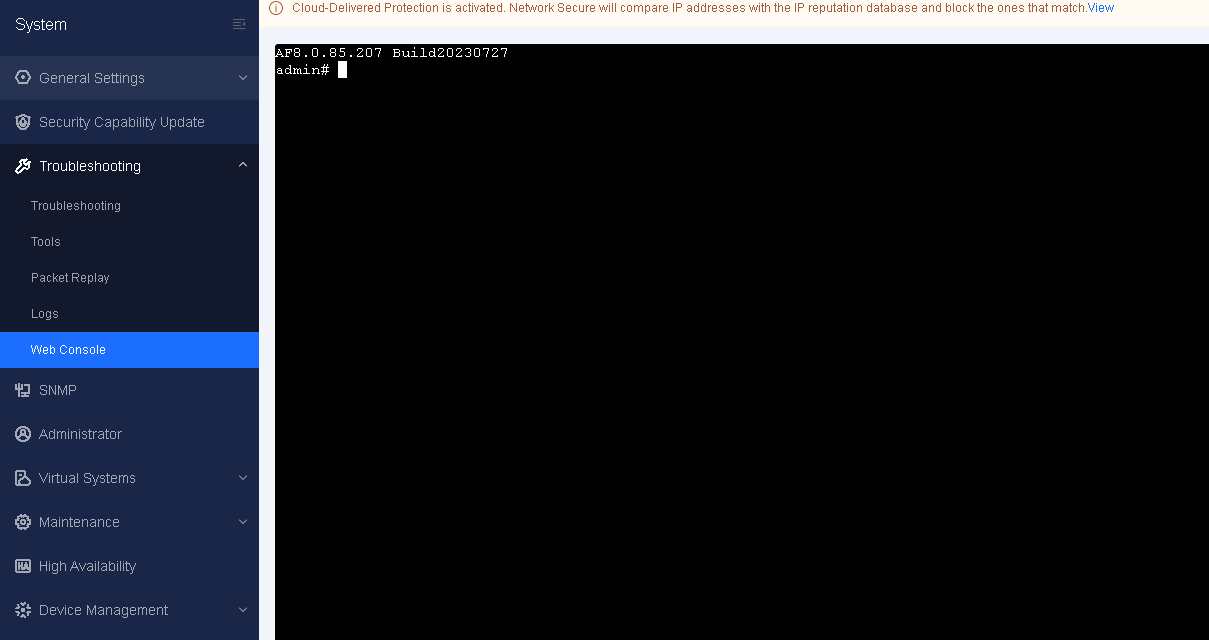 Network Secure also supports secure SSH login. After logging in, you can manage devices by using the command line.