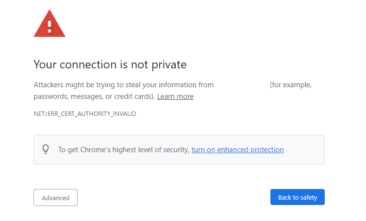 - First, configure the device’s IP address or network segment 10.251.251.X (for example, 10.251.251.100). Then, enter the URL https://10.251.251.251 in the browser. A security warning page, as shown below, will be displayed. Click Advanced and then Go to this page to jump to the console login page.
