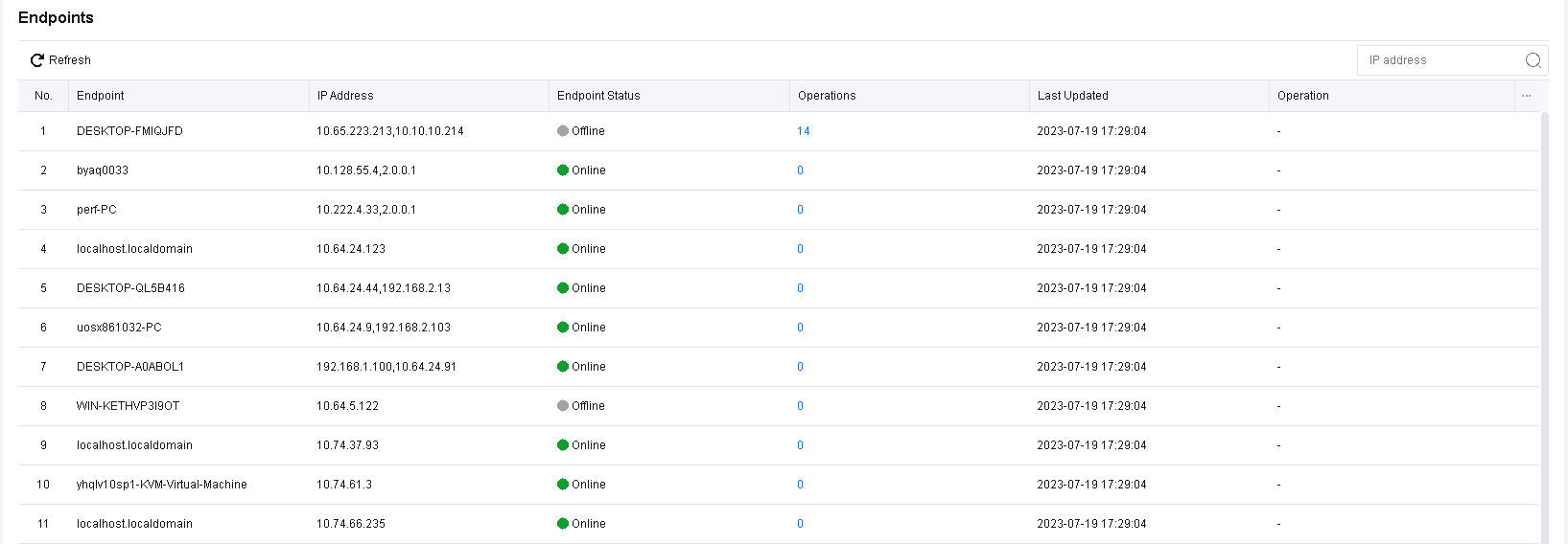 | 1 | Whether the endpoint can access the Internet. | The endpoint can access the Internet when the device is online. |