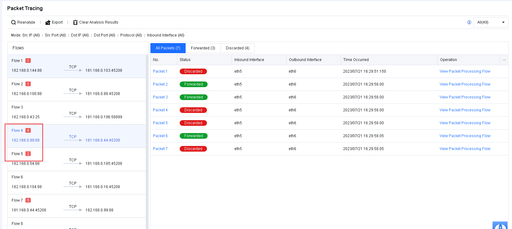 Turn off the device and check whether the service returns to normal. If the eth0 and eth2 ports are not bypass interfaces, connect the uplink and downlink to a pair of bypass interfaces to check whether the service returns to normal, or directly skip the firewall and test again.