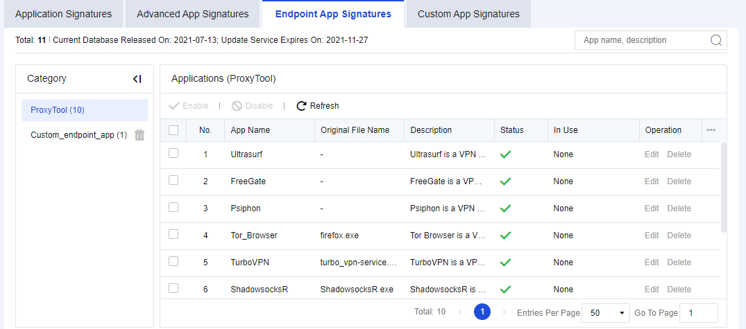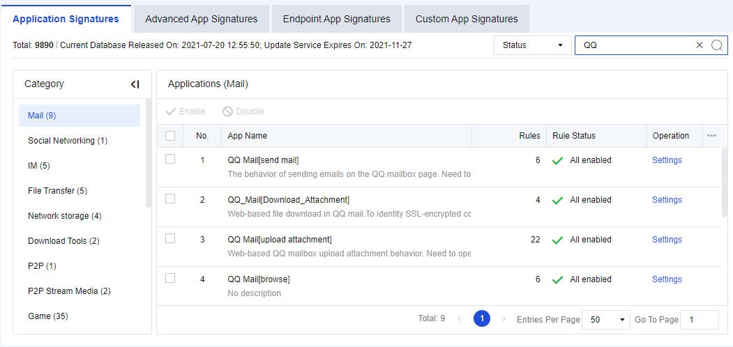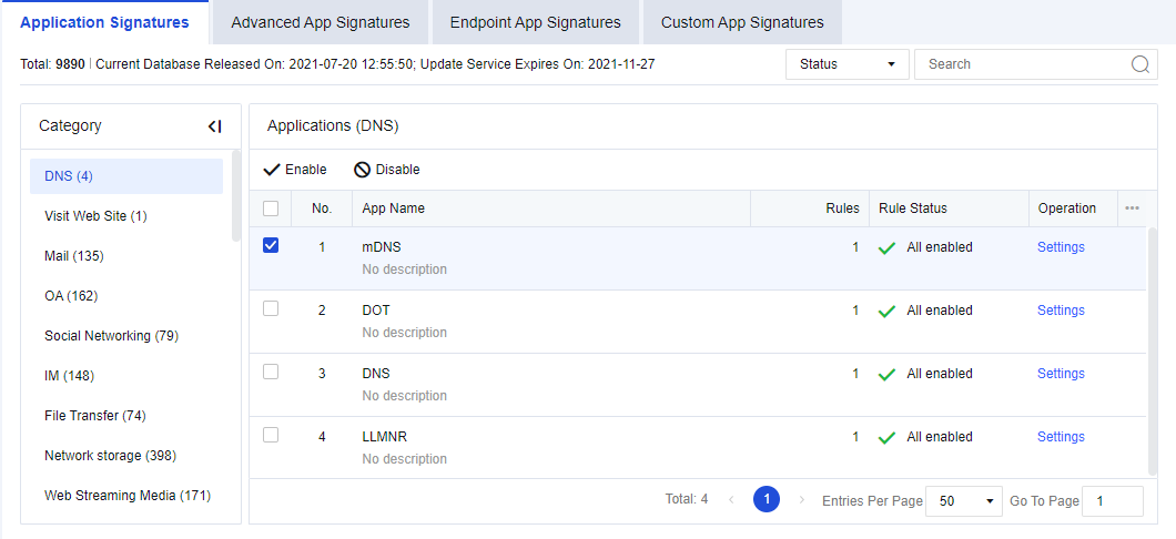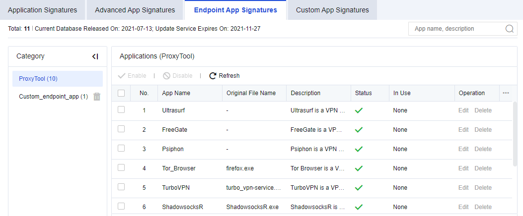 | 6 | Whether the database is up-to-date. | The database is up-to-date after the implementation is complete for optimal application identification accuracy. |