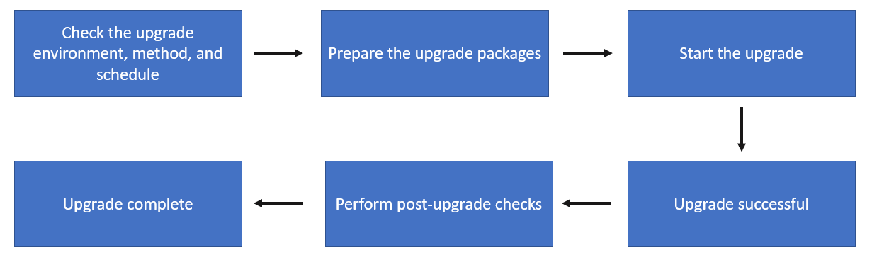 Check whether the current version can be upgraded: Upgrade from a custom version is not supported. If the device has a KB package installed, check with developers to see whether the device can be directly upgraded and whether the issues for the developed package have been fixed.