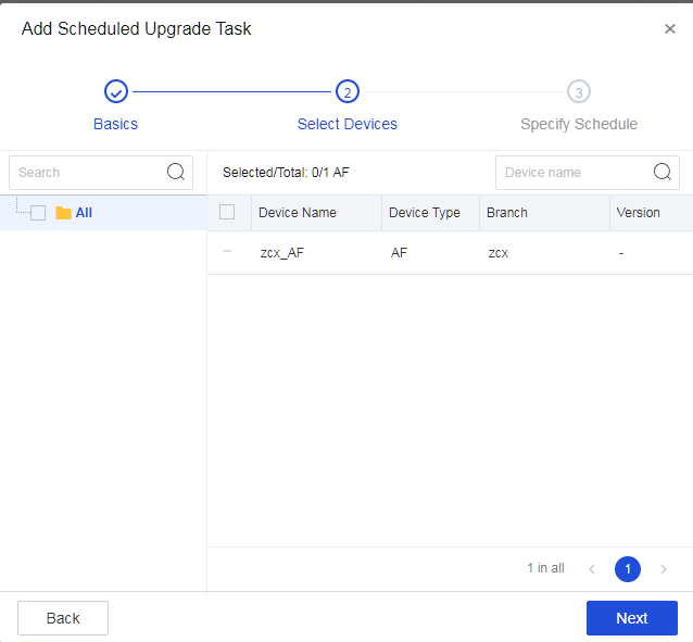 - Log in to Central Manager, go to System > Upgrade > Branch Device Upgrade, and click Add Task to configure the settings.