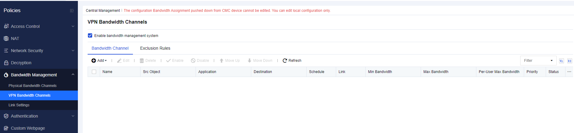 Fine-grained bandwidth management is supported all VPN tunnels. Users can determine the priorities of different tunnels to meet specific requirements.