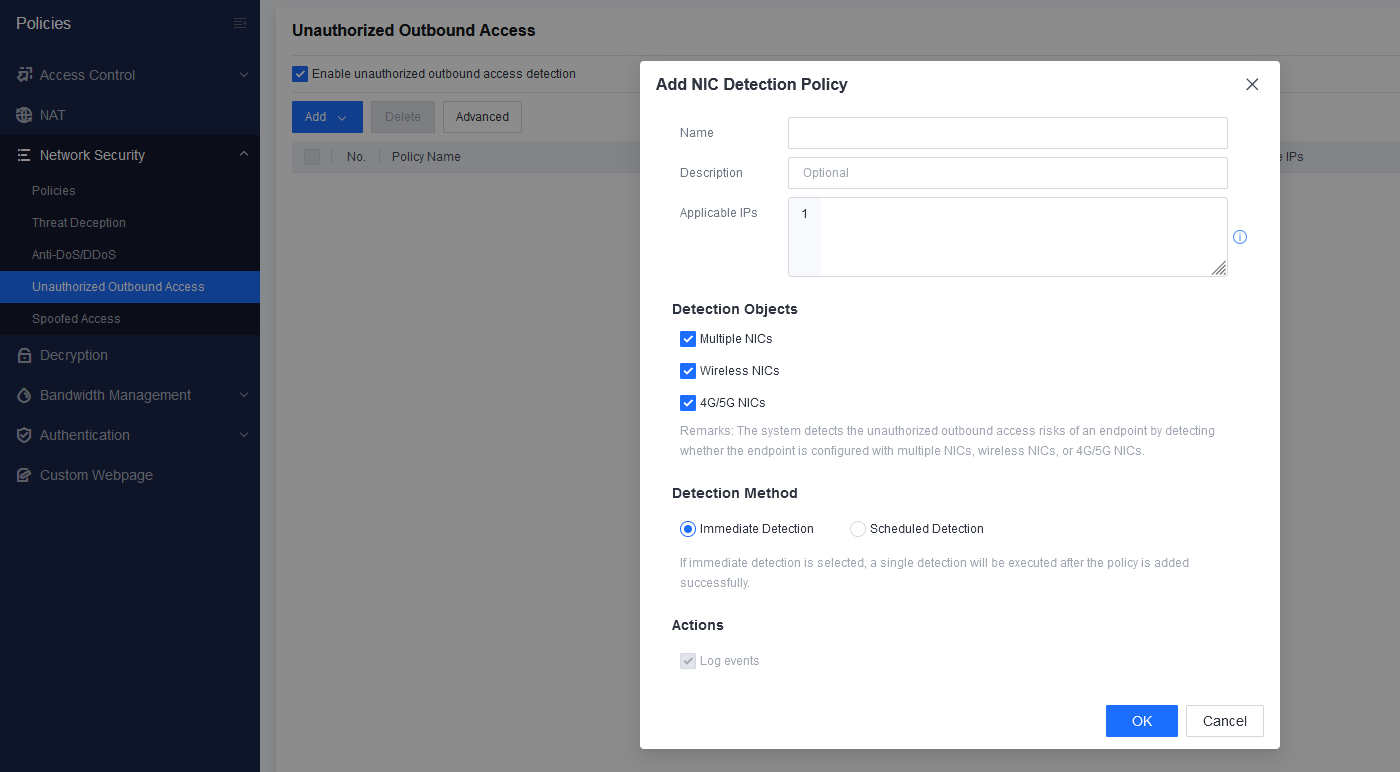 Unauthorized outbound access can be detected by scanning the NIC information and checking WLAN and WWAN services.