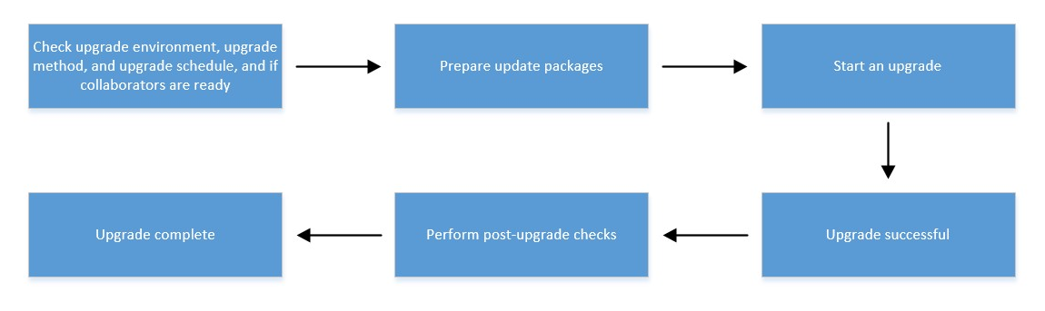 The upgrade process may take about 20 minutes under normal conditions (at least 40% of the total CPU and memory are available, and the network is connected).