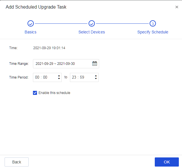 Log in to Central Manager, go to System > Upgrade > Branch Device Upgrade, and click Add Task to configure the settings.