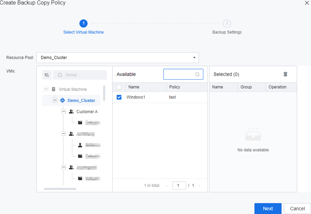 Backup Copy Policy provides backup replication policy services for a virtual machine and regularly replicates backups. It allows the backups have copies on multiple storages to meet the data security requirements of some customers for industries such as finance, manufacturing, government departments, and high-end customers in the education industry have mandatory requirements for data security. It is required that data must be stored in three different locations: local, one local to other clusters/remote locations, and external storage. At the same time, it is necessary to support the storage method of external storage devices.