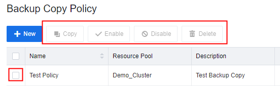 Copy: Click to trigger the policy and copy the backup immediately for the selected policy.