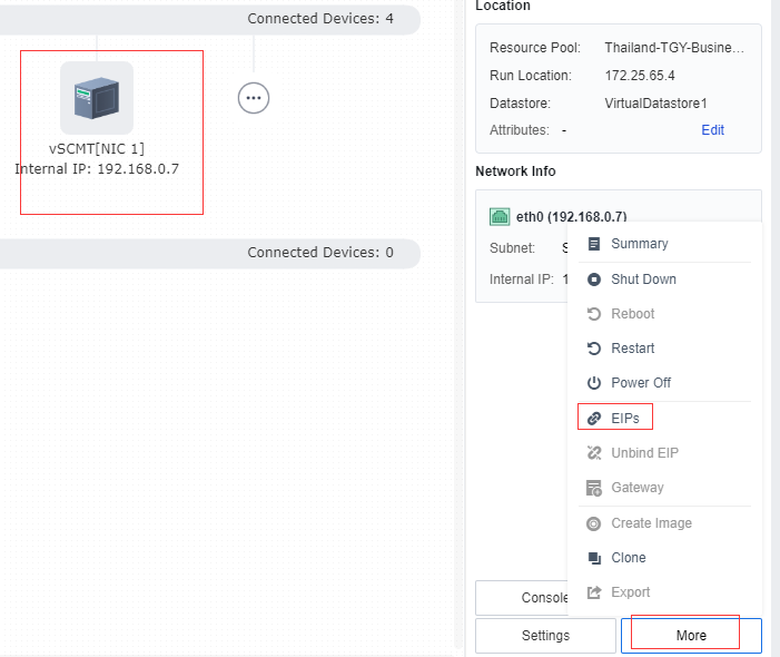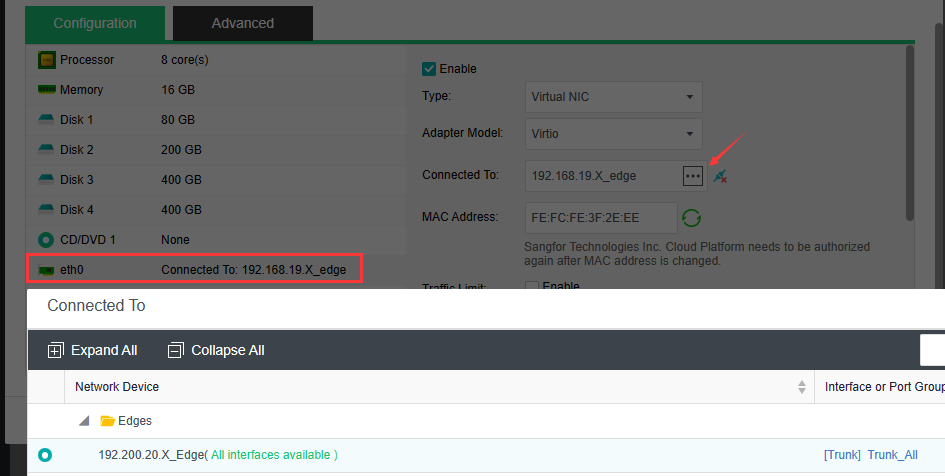 Step 1. Select the newly imported SCP virtual machine. Click More > Edit to edit the NIC, connect to the network, and click OK.