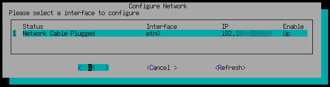 Step 3. Click the key ↑↓ on the keyboard to select Configure Network and press enter. Then select eth0.