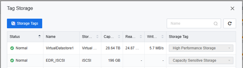 According to the actual situation of the cluster, different tags can be set for different storage volumes. The default includes high performance, performance, and capacity.