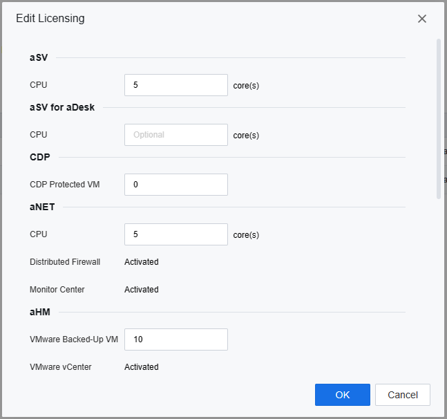 Select System > Licensing > Cluster and click Licensing. License different modules according to requirements.