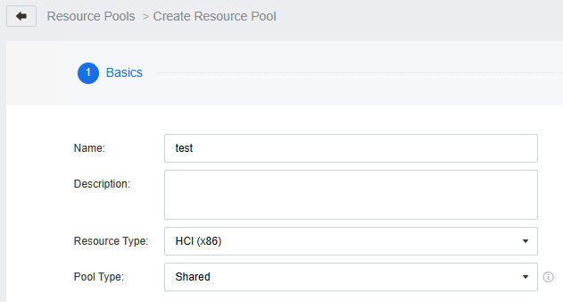 Fill in the name Resource Type and Pool Type.there are two Pool Type Shared mode and Dedicated mode.