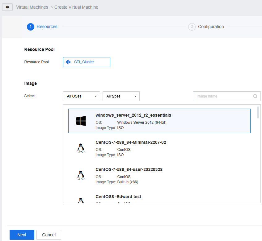 Public and Private VM images are divided into ISO mirrors and built-in mirrors (HCI mirrors). ISO mirrors are files in iso format, and built-in mirrors (HCI mirrors) are converted and produced by virtual machines.