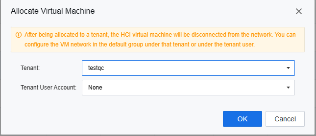 For tenants, in addition to virtual machines allocate by the admin user, they can also create their own virtual machines. Login SCP with tenant portal https://ip after login success, create VM with the same step in Chapter 7.2 .