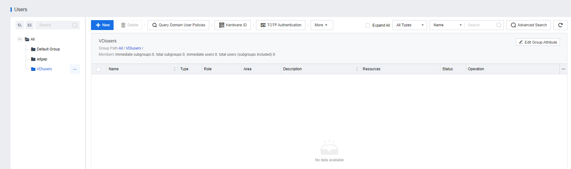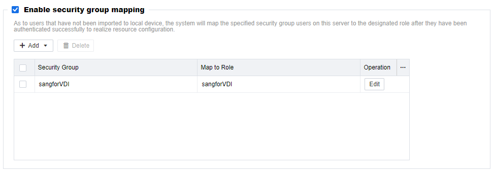 For users who have not been imported to the VDC, after successful authentication, the system will map the specified security group users on the domain server to the designated role to implement the resource configuration.