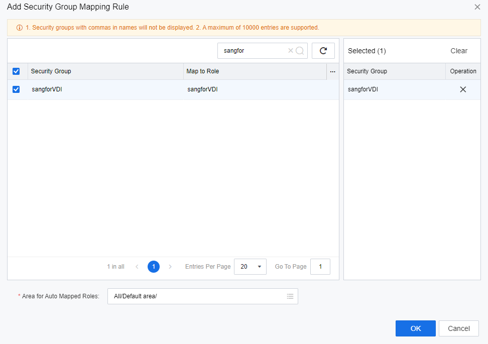 - On the Add Security Group Mapping Rule page, select the security group as required. Then, click OK.