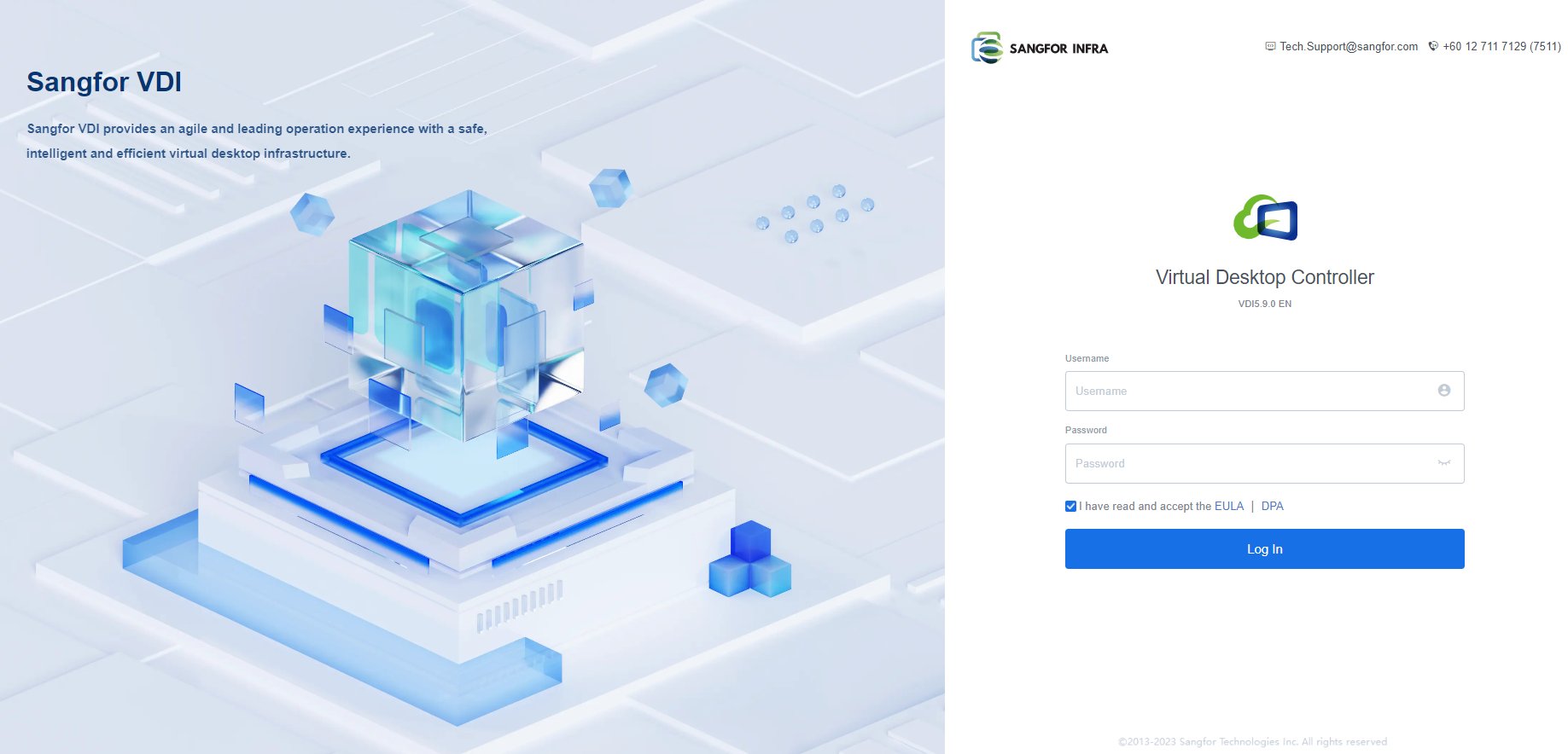 - After completing the deployment, visit VDC’s management URL (https://Management IP address:4430) with a browser. You will see the login page of the management console if the deployment is successful.